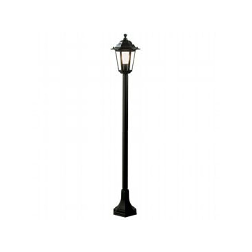 Paletto basso a 1 luce con struttura in pressofusione di alluminio nero e diffusore in vetro trasparente. Dotato di dispositivo di connessione, monta lampadina con altezza massima 155 mm (non inclusa). Disponibile anche nell versione palo telegrafico a 3 luci.