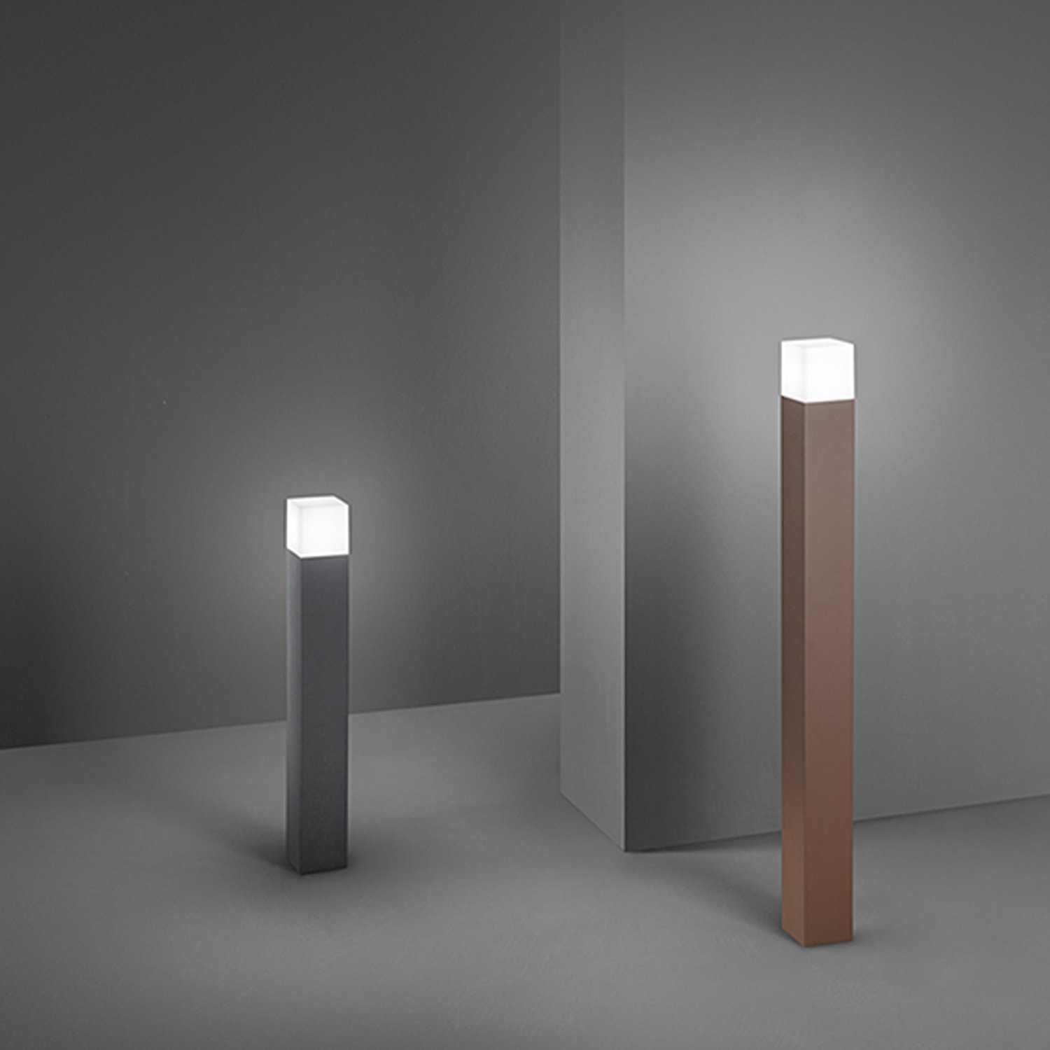 Collezione TowerCollezione con struttura in metallo e alluminio verniciato a polvere nei vari colori. Diffusore in acrilico satinato. Colore: corten opaco L.8x8 x H...