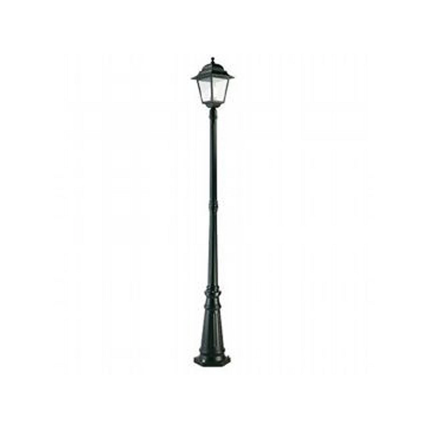 Palo 1 luce, altezza 212 cm, realizzato con struttura in pressofusione di alluminio color nero e diffusore in vetro trasparente.. Dispositivo di connessione e triangolo di fissaggio a terra. Adatto per lampadina con altezza massima 210 mm (non inclusa). Disponibile in diverse misure.