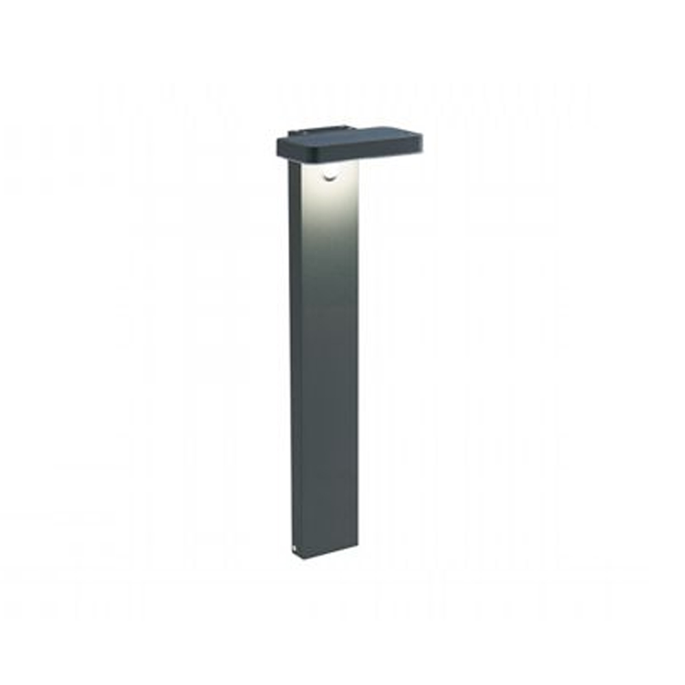 Palo solare in alluminio pressofuso grigio antracite e corpo illuminante in termoplastico. Nato per essere installato in zone non sempre raggiunte o servite da corrente elettrica. Risulta ideale per ogni ambiente esterno, grazie alla semplicità di installazione e posizionamento. Illuminazione a LED 3.7V con batteria al litio ricaricabile 2000mAh (inclusa), sensore di movimento e crepuscolare. Luce diretta con diffusore in termoplastico trasparente.