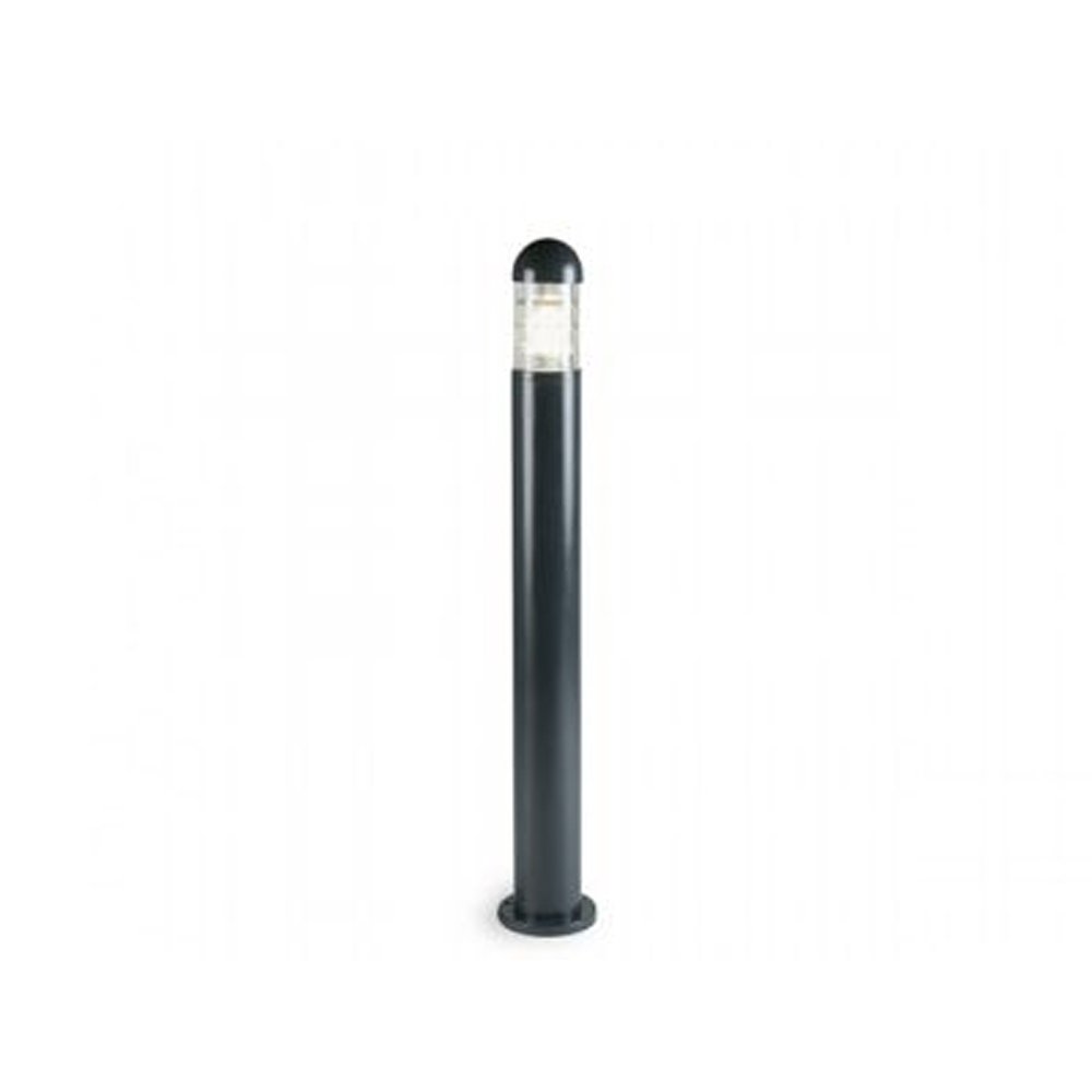 Palo (100 cm) realizzato in alluminio pressofuso, color grigio antracite goffrato.. Disegnato per ambientazioni esterne, la sua forma, con il corpo illuminante che lo sovrasta e dove la luce è racchiusa da una griglia che la protegge e la irradia, ricorda il faro a cui si orientano le navi. La luce come fonte di vita dunque, alla quale tutti fanno affidamento. Alimentazione 230V. Luce diretta con diffusore in vetro trasparente, dotato di dispositivo di connessione.