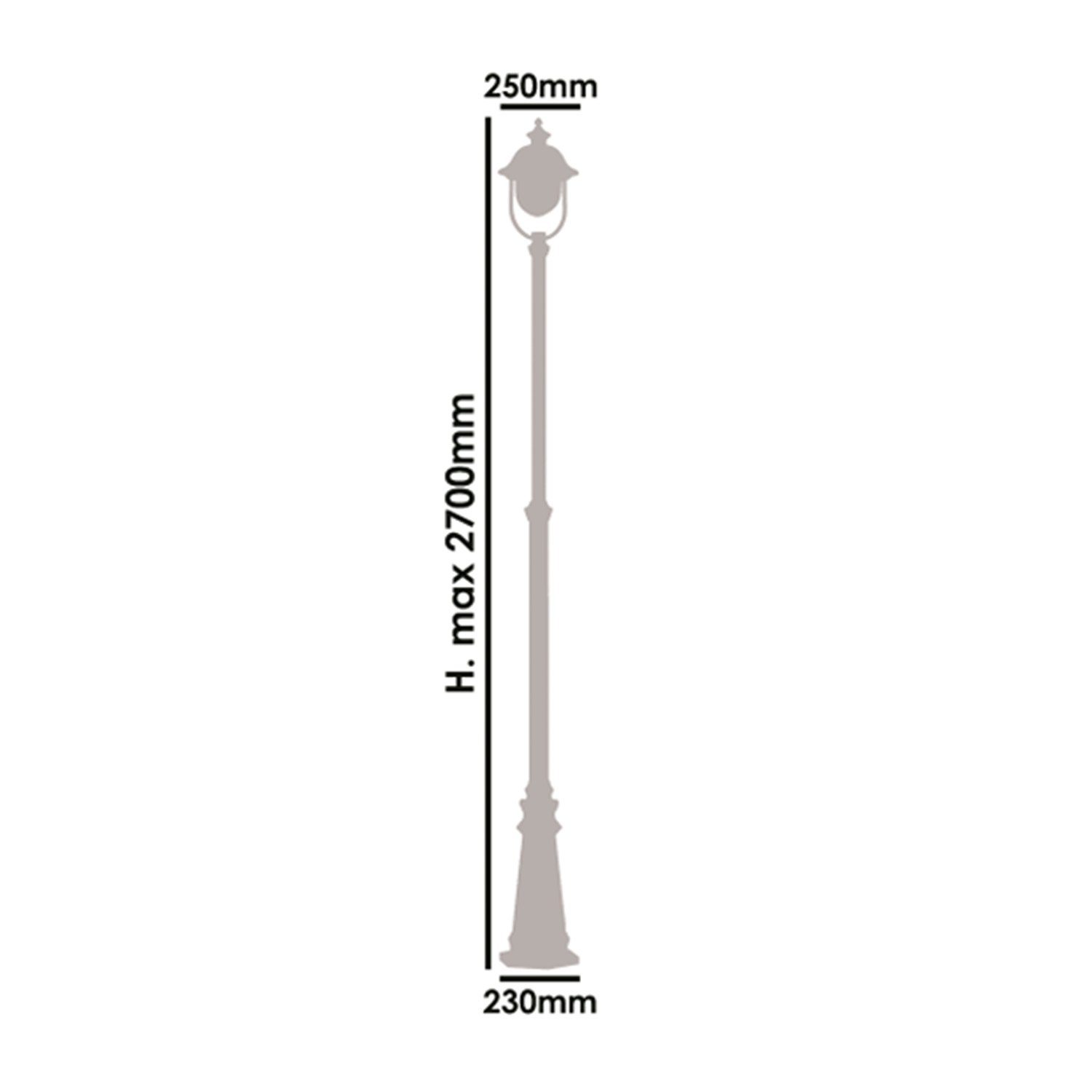 Palo con lanterna H.max 270cm regolabile Struttura in Alluminio pressofuso Portalampada 1x75w/E27 Copertura in Colore RAME Diffusore in PC Colore: NERO/RAME.