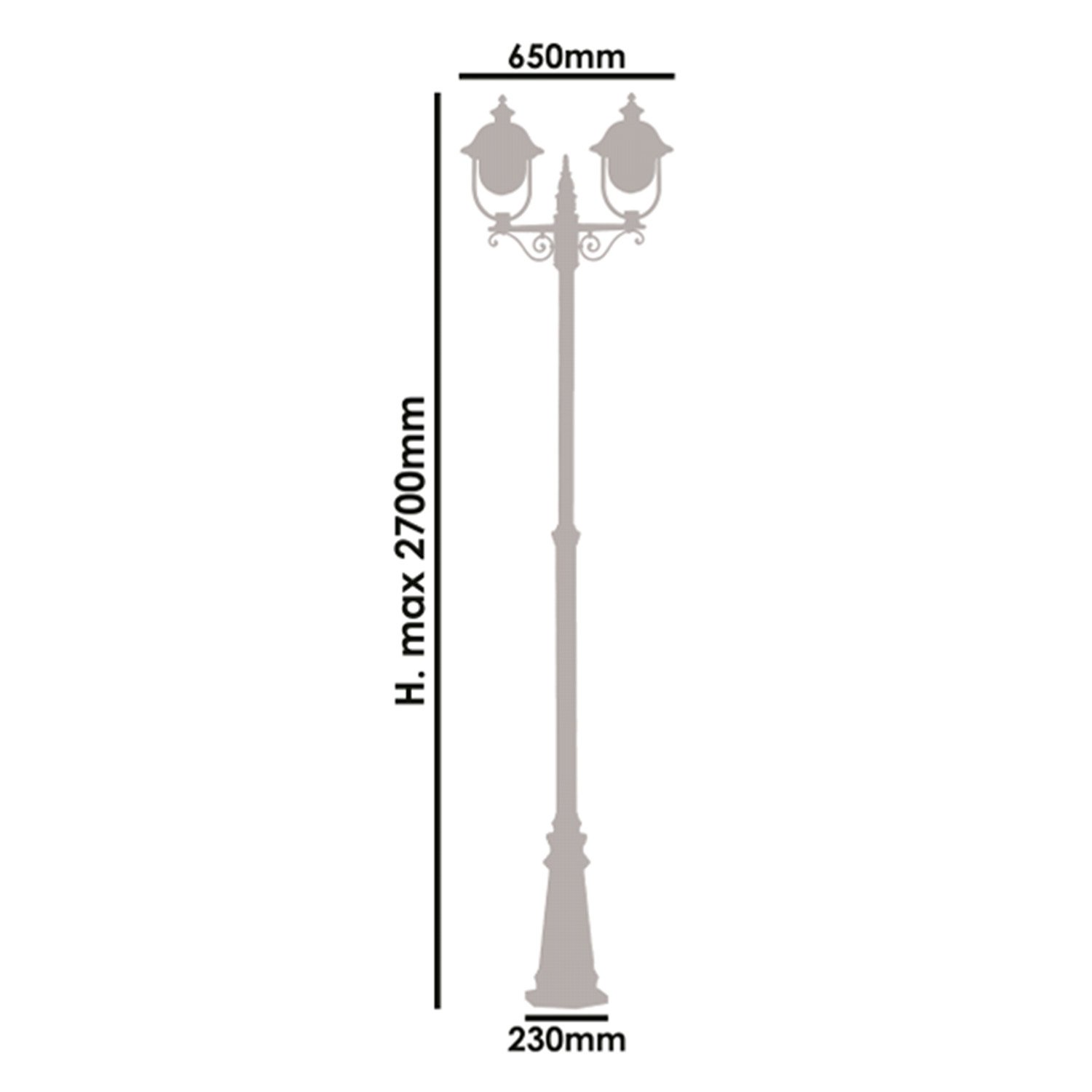 Collezione TatumTECNOLOGIA E DESIGN PER UN'ILLUMINAZIONE PERFETTAPalo con 2 lanterna H.max 270cm regolabile Struttura in Alluminio pressofuso Portalampada 2x75w/E27 ..