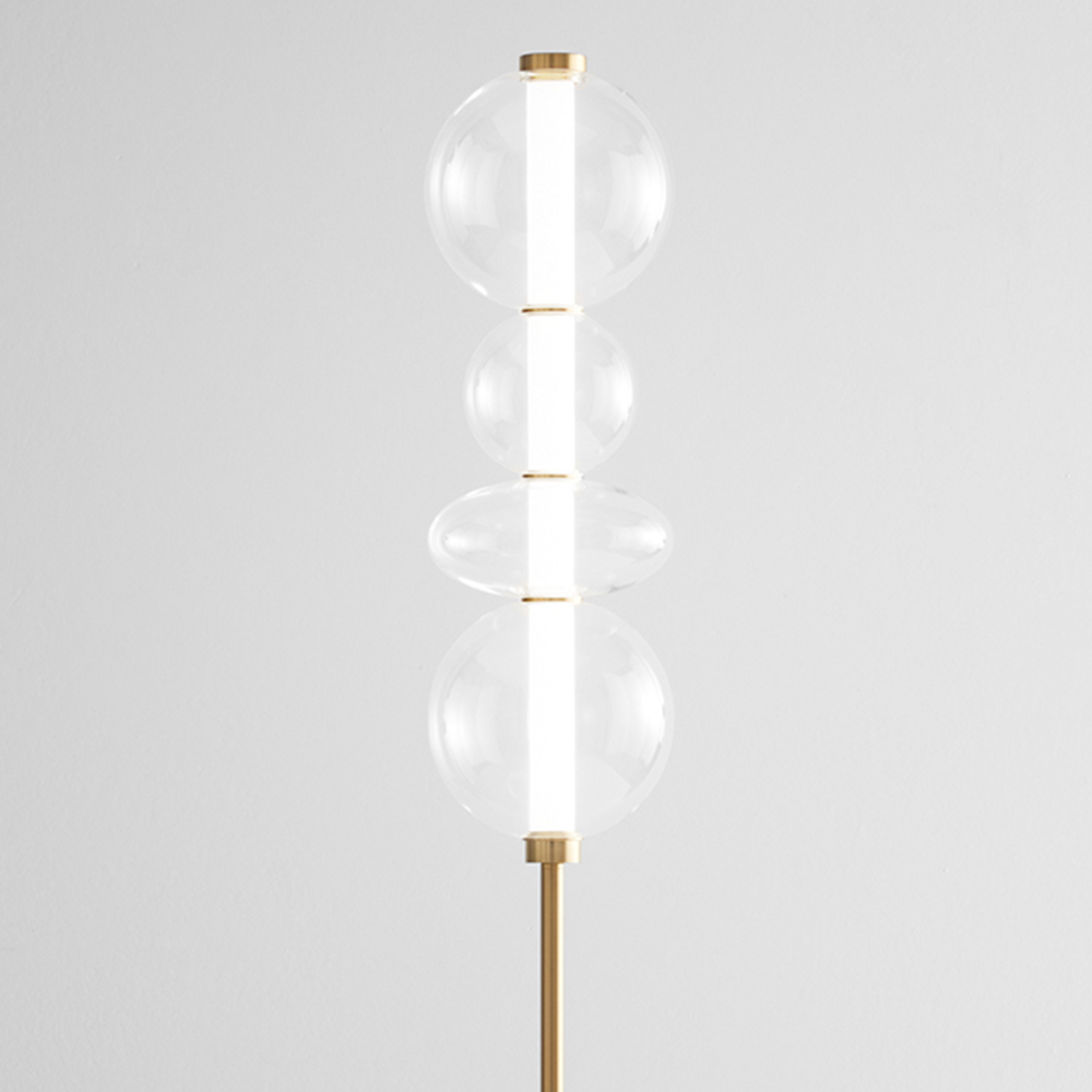 Piantana Contemporanea Bubbles Alluminio Oro Vetro Trasparente Led 36W 3000K