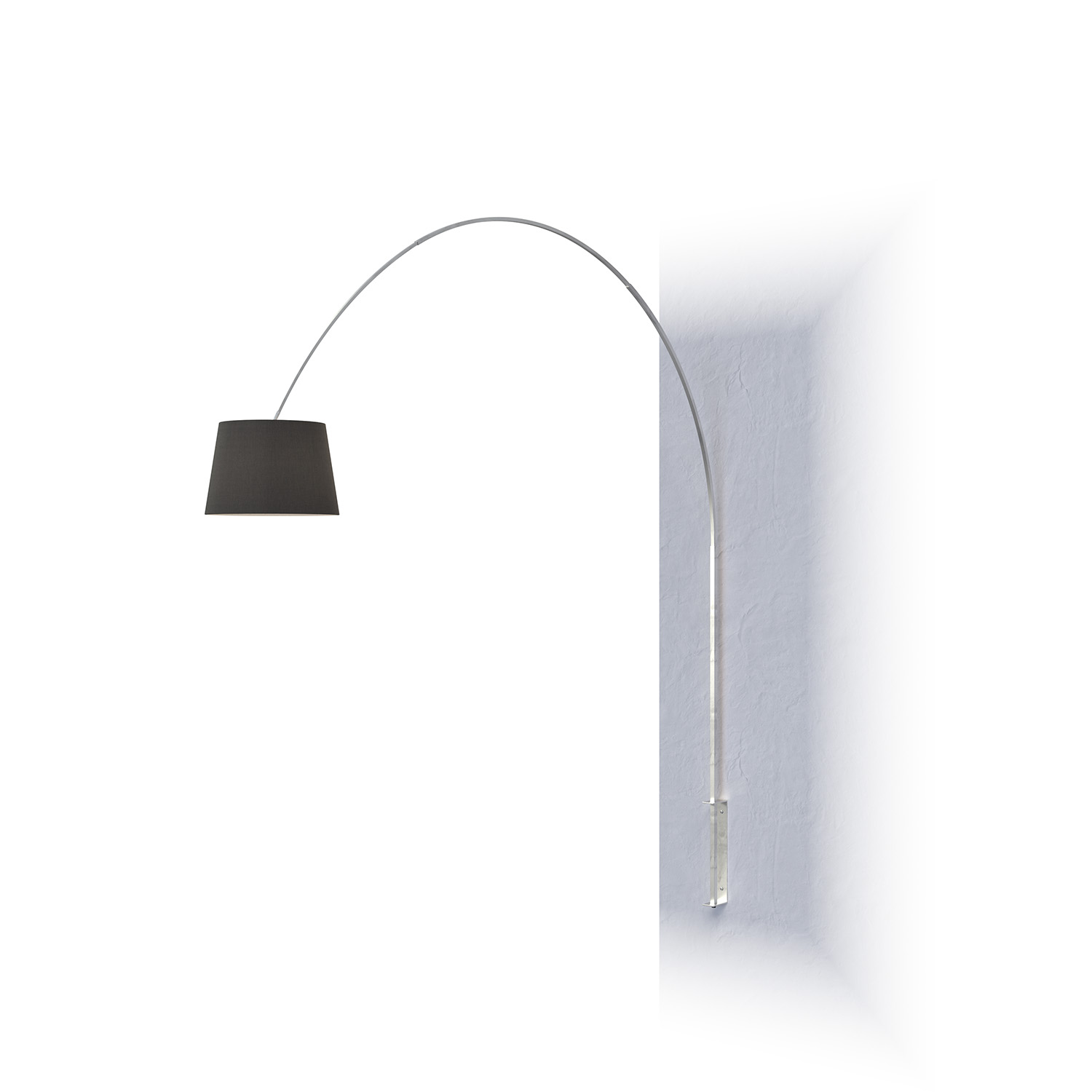Piantana composta da uno stelo metallico curvo regolabile in varie posizioni, sezione quadrata e finitura satinata. È possibile selezionare la forma ed il colore dei basamenti in marmo cilindrico alto o cilindrico basso. È anche possibile abbinare diversi formati di diffusore: due in tessuto e uno metallico. La collezione viene completata da una combinazione per il fissaggio a parete mediante una staffa che sostituisce il basamento tradizionale.