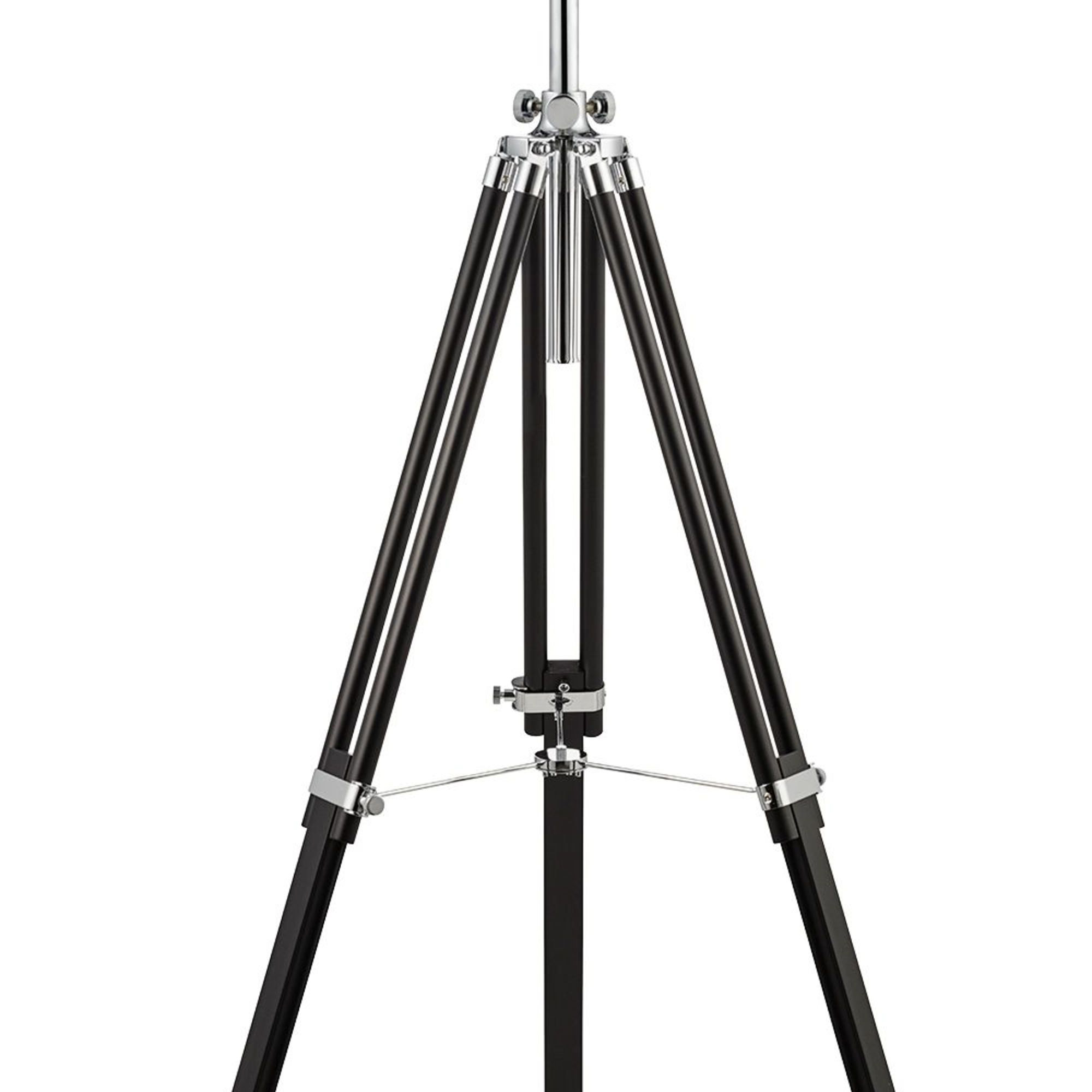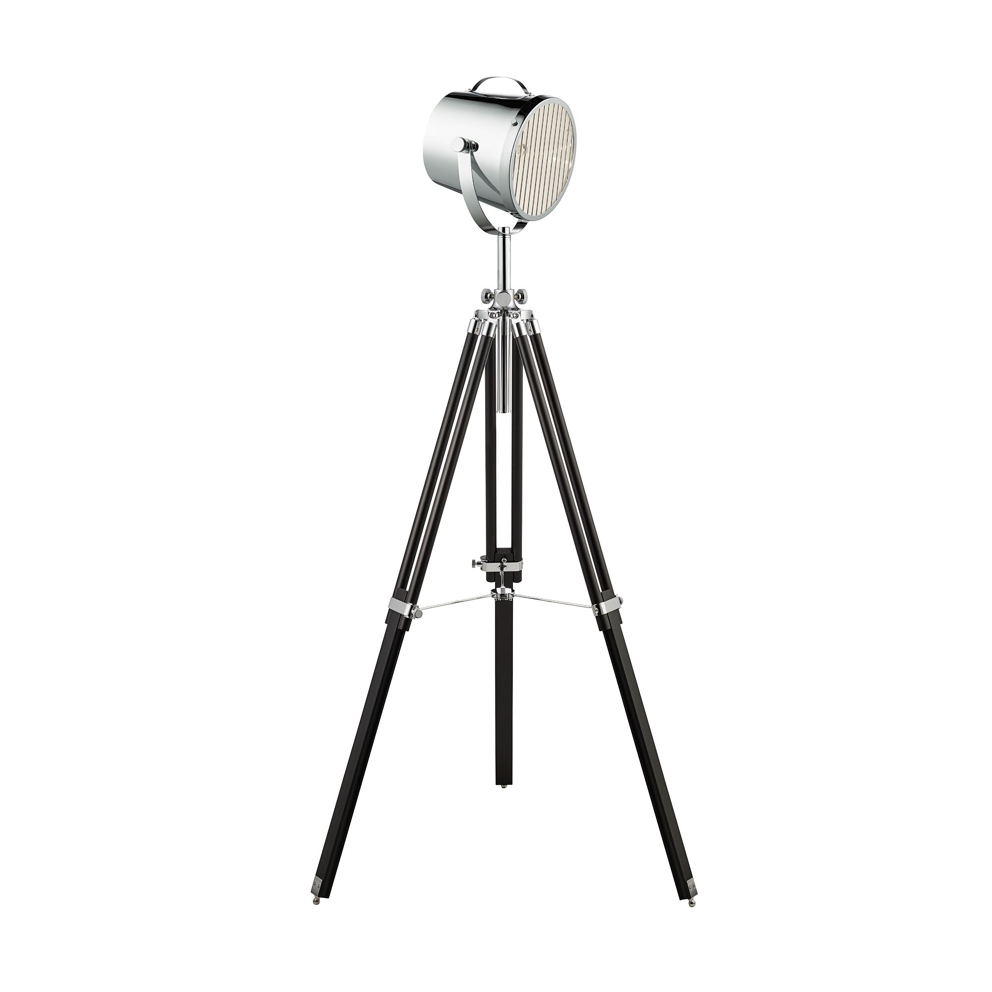 Regala una sensazione di glamour hollywoodiano con questa lampada da terra sul palco regolabile da Studio. La base del treppiede in legno nero sostiene il paralume cromato a forma di tradizionale lampada da studio. Funziona come un elemento centrale per qualsiasi ambiente contemporaneo e forse fornisce un aggiornamento moderno per uno spazio tradizionale.