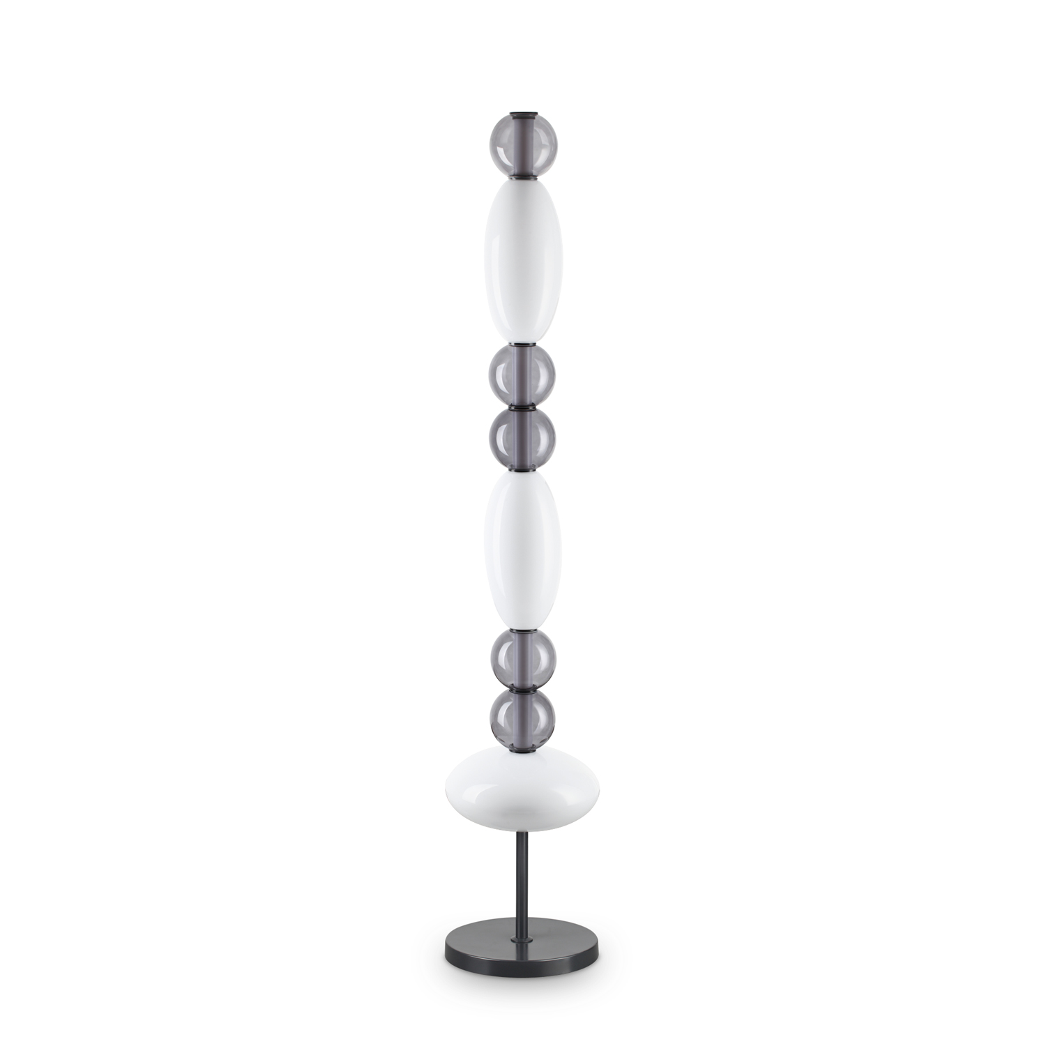 Piantana da terra Contemporanea Lumiere Metallo Nero Led Integrato 58W 3000K IP20 A++ h.max.240 h.min.65 D.6 L. Lampadina inclusa. Montatura e dettagli in metallo verniciato nero opaco. Diffusore tubolare centrale bianco. Elementi decorativi in vetro soffiato bianco lucido e trasparente grigio. Cavo in pvc.