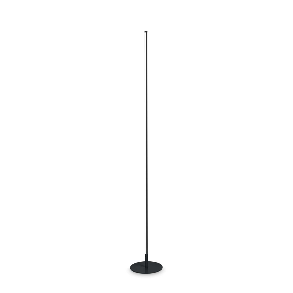 Piantana h.146,5 cm con base e montatura in metallo verniciato opaco. Diffusore in policarbonato opale. Cavo in pvc con presa-alimentatore.. Colore nero. Sorgente luminosa LED 17 W 3000 K. Lampada con interuttore integrato.