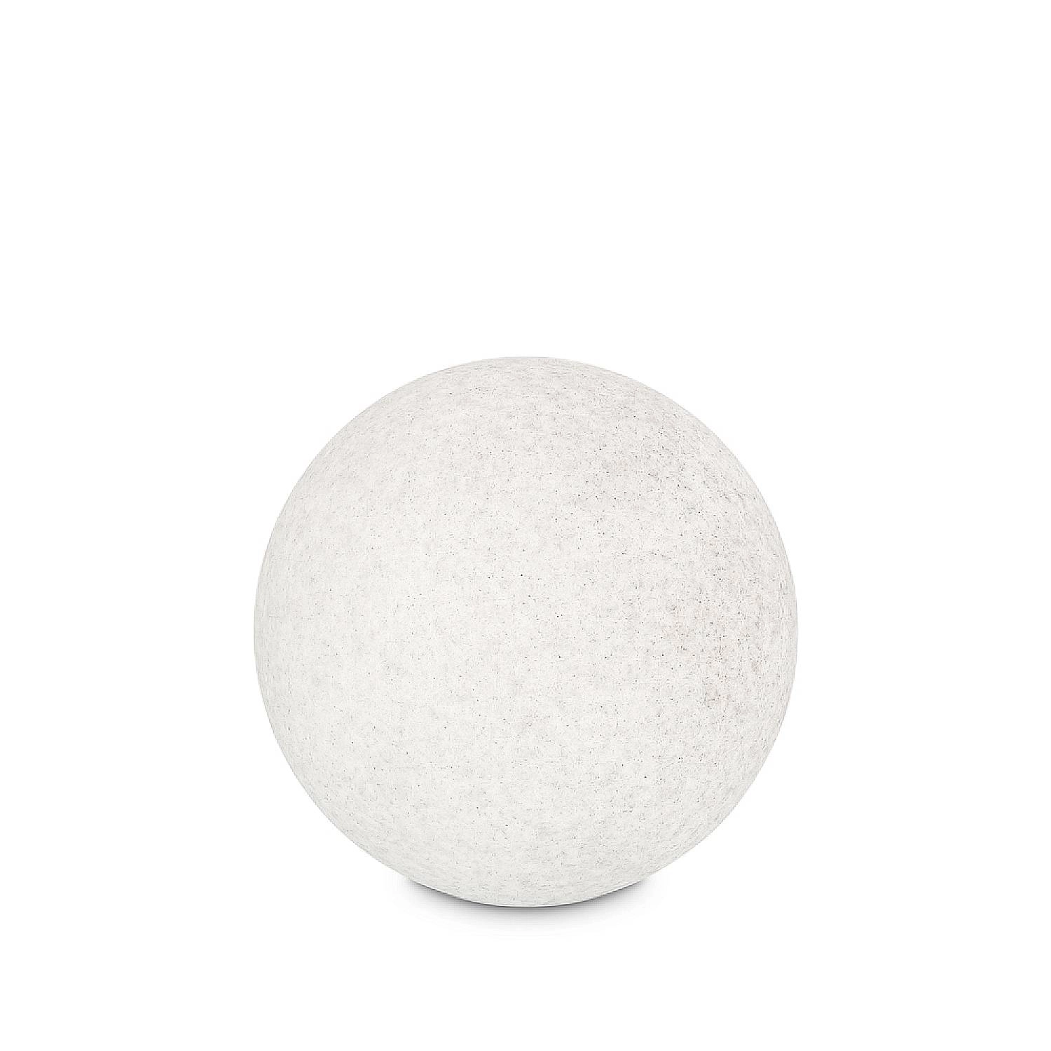 Collezione DORISBOLLE DI LUCE PER ESTERNILampada da terra per esterno con diffusore in materiale plastico grigio melange effetto granito.. Fornito con spina e picche..