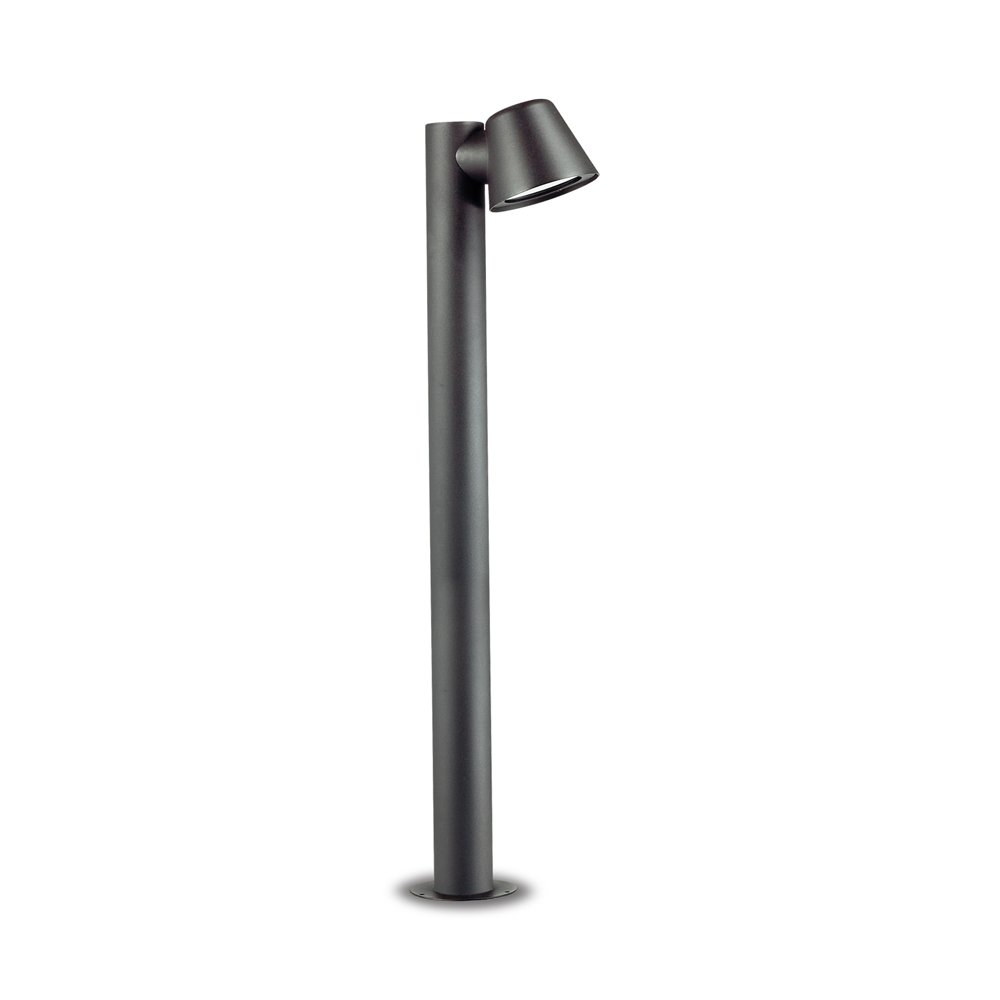 Palo basso da esterno con corpo luce in alluminio pressofuso verniciato a polveri antracite. Diffusore in vetro temperato trasparente sabbiato..
