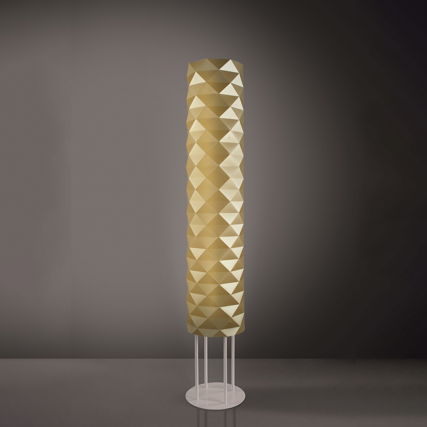 Per questa lampada il designer Enea Ferrari trae ispirazione dall’arte, dai mosaici pavimentali geometrici della Basilica di San Marco e di San Vitale.. Le forme triangolari, incise della Prisma, giocano con il concetto di luci e ombre per ricreare l’effetto a mosaico. Grazie alla continua ricerca, Linea Zero ha ideato uno speciale materiale diventato simbolo del proprio concetto di smart design. Il Polilux™ è un tecnopolimero eco-friendly che unisce all’estetica altre peculiarità essenziali, come l’efficienza, la durata nel tempo, la praticità e il rispetto per l’ambiente. L’azienda ha ritenuto doveroso creare un materiale contenente elementi di riciclo, tagliabile a freddo con emissioni di CO2 pari a zero e assemblabile a mano senza l’ausilio di macchinari. Inoltre, grazie all’ottimizzazione del taglio, lo scarto è ridotto al minimo e riciclato a sua volta. A fine vita, il Polilux è completamente riconvertibile e riciclabile, nel rispetto rigoroso delle normative e della sostenibilità ambientale. Questo esclusivo materiale dona ai prodotti una diffusione della luce pari a quella del vetro satinato, oltre ad aggiungere molti altri vantaggi: le collezioni Linea Zero sono infatti leggere, flessibili, infrangibili, antistatiche ed estremamente versatili. Ma non solo. Grazie alla sua speciale composizione, il Polilux è atossico, estremamente resistente alla luce ed agli agenti atmosferici, non ingiallisce nel tempo, vanta una eccellente resistenza ai solventi e a tutti i prodotti per la pulizia domestica.
