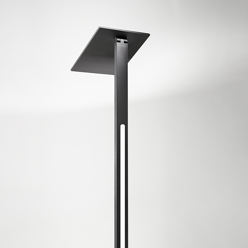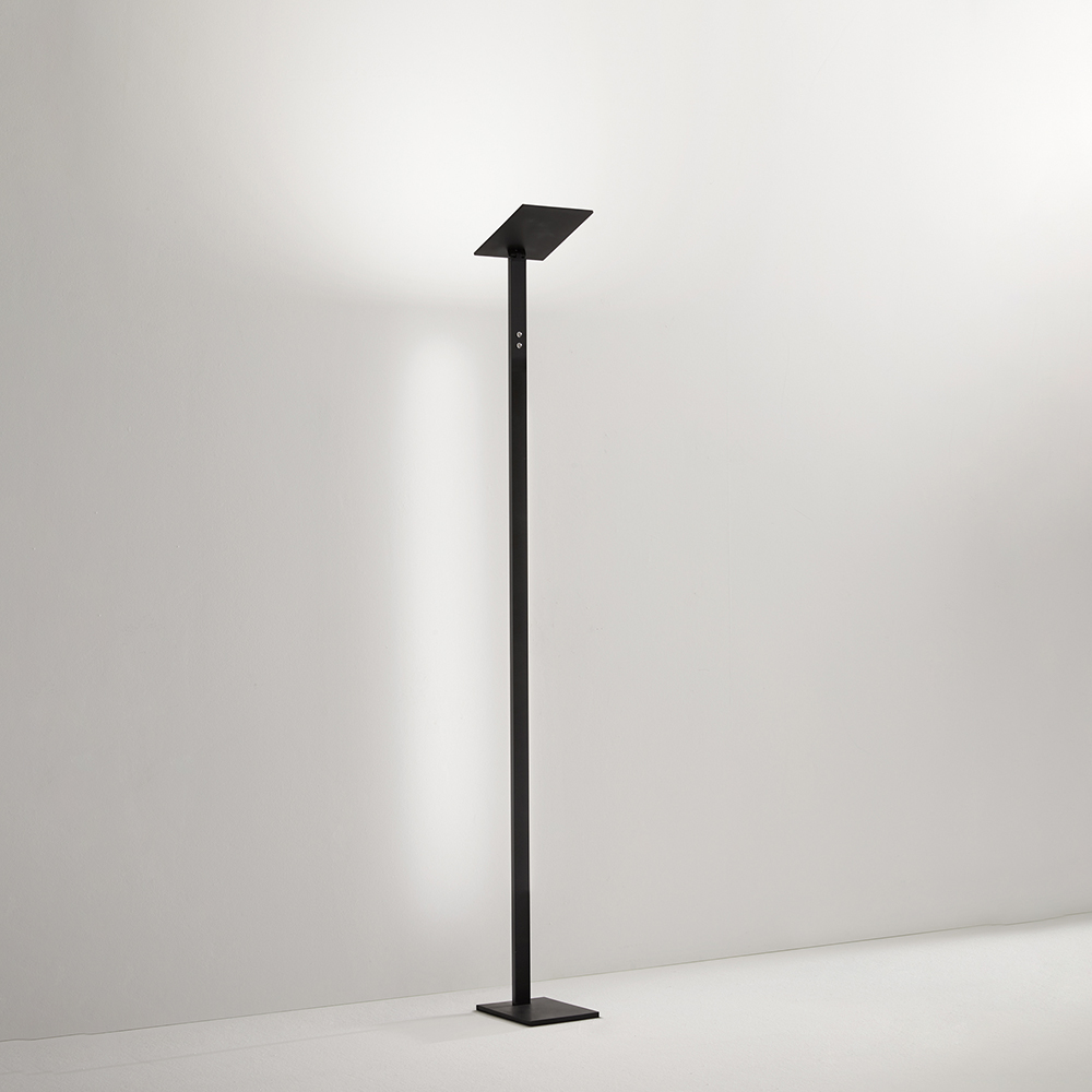 Collezione QuadraILLUMINA IL TUO ANGOLOPiantana in metallo e alluminio nero opaco Led 24W + 10W 2160LM+900LM 3000/4000/6000K H.180 cm - base L 24x19 cm doppio interr..