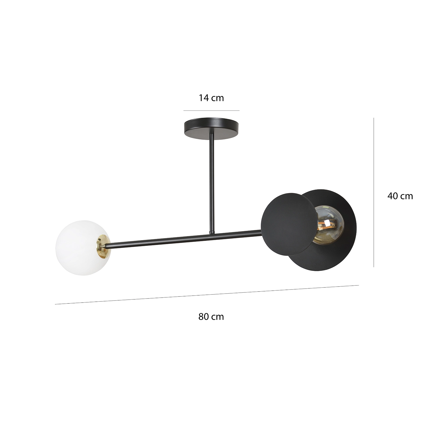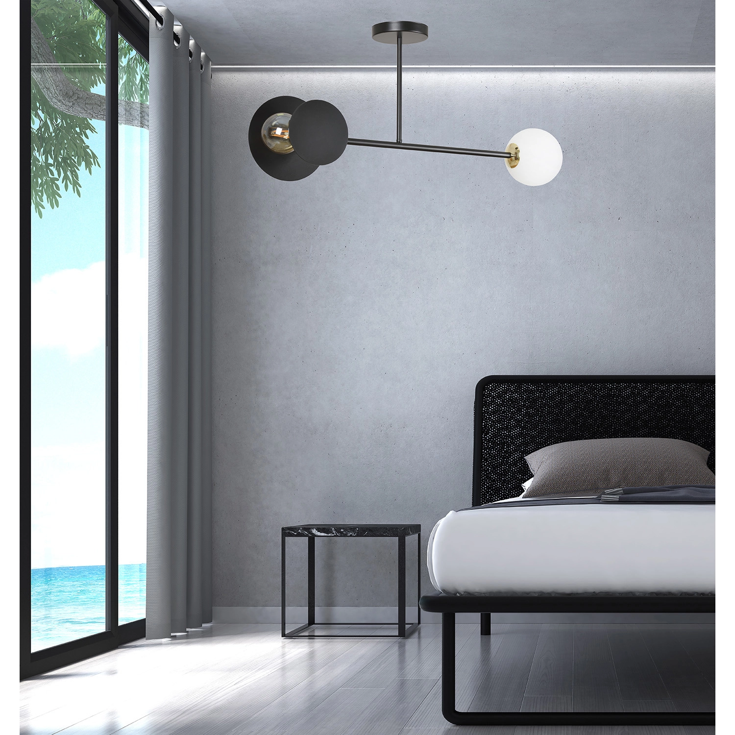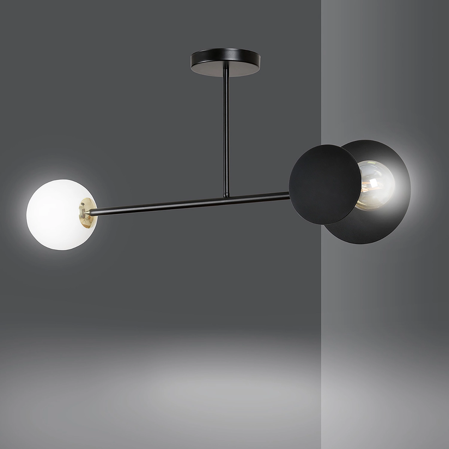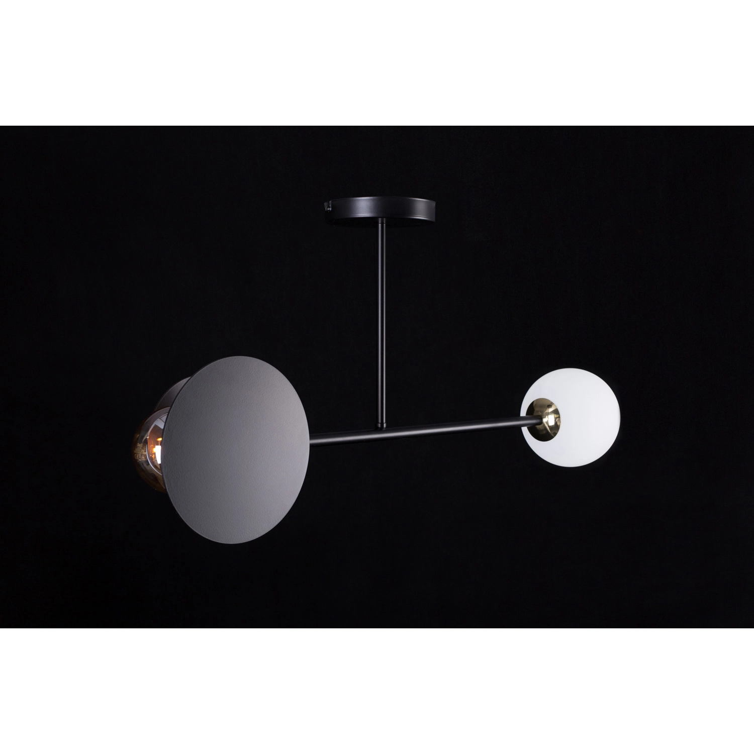 Plafoniera 2 luci Inari in acciaio nero e sfera in vetro opalino emibig 612/2