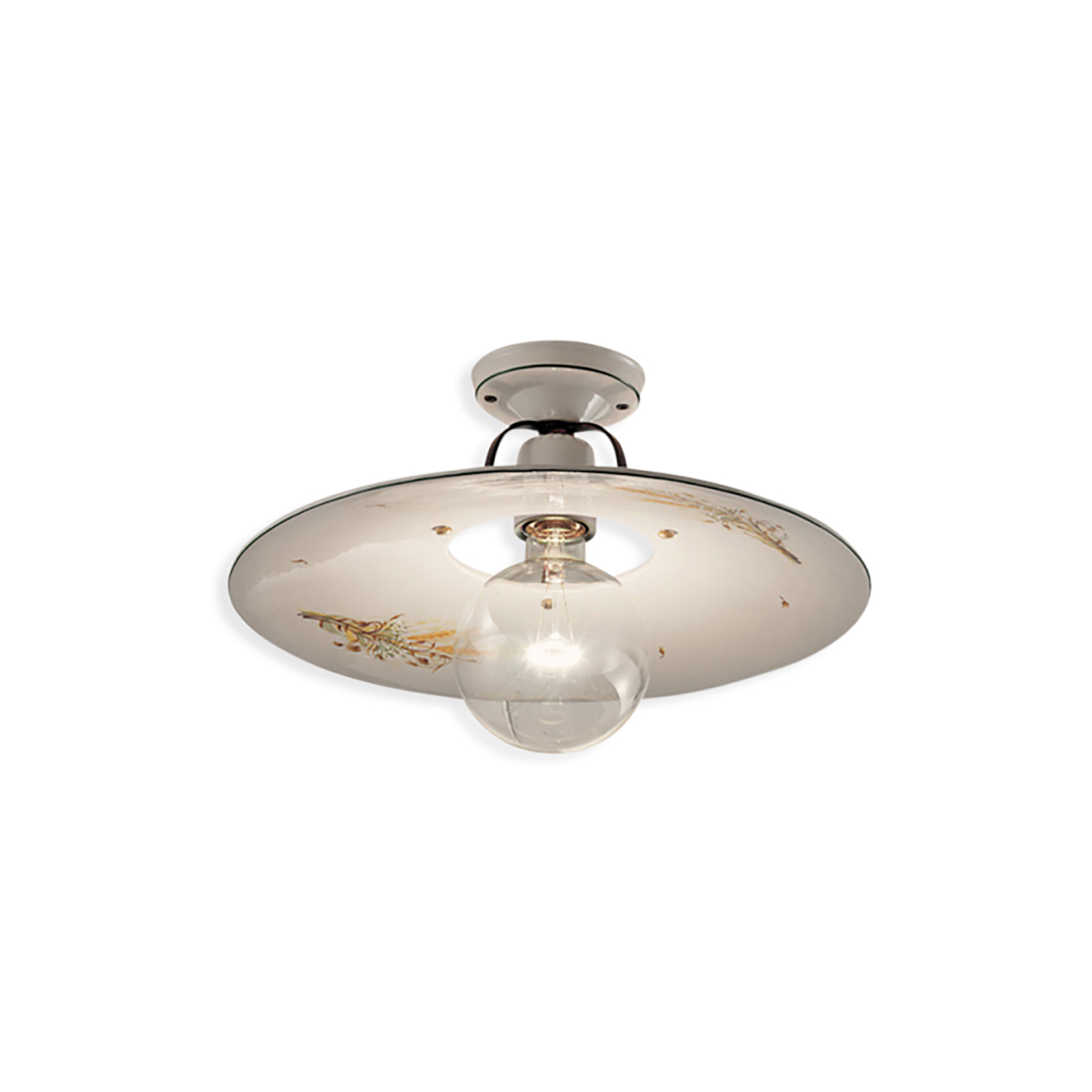 Collezione BOLOGNAIL RIGORE RUSTICOPlafoniera 1 luce E27 diametro 30 cm in ceramica decoro filo verde prato con montatura nero sfumato rame frutto di una lavorazione..