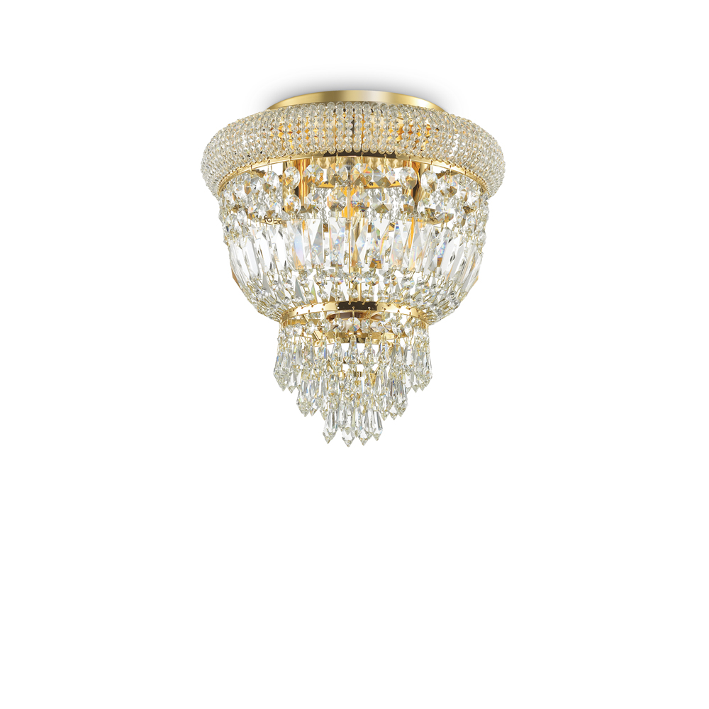 Plafoniera Classica Dubai Metallo-Cristallo Ottone 24 Luci E14