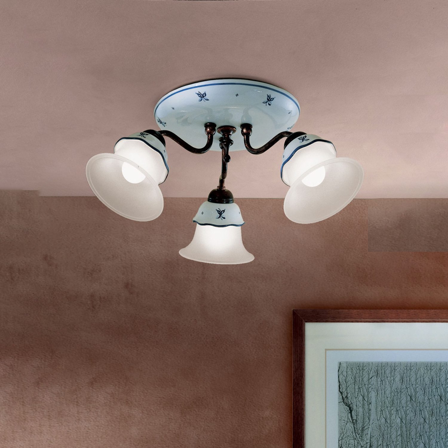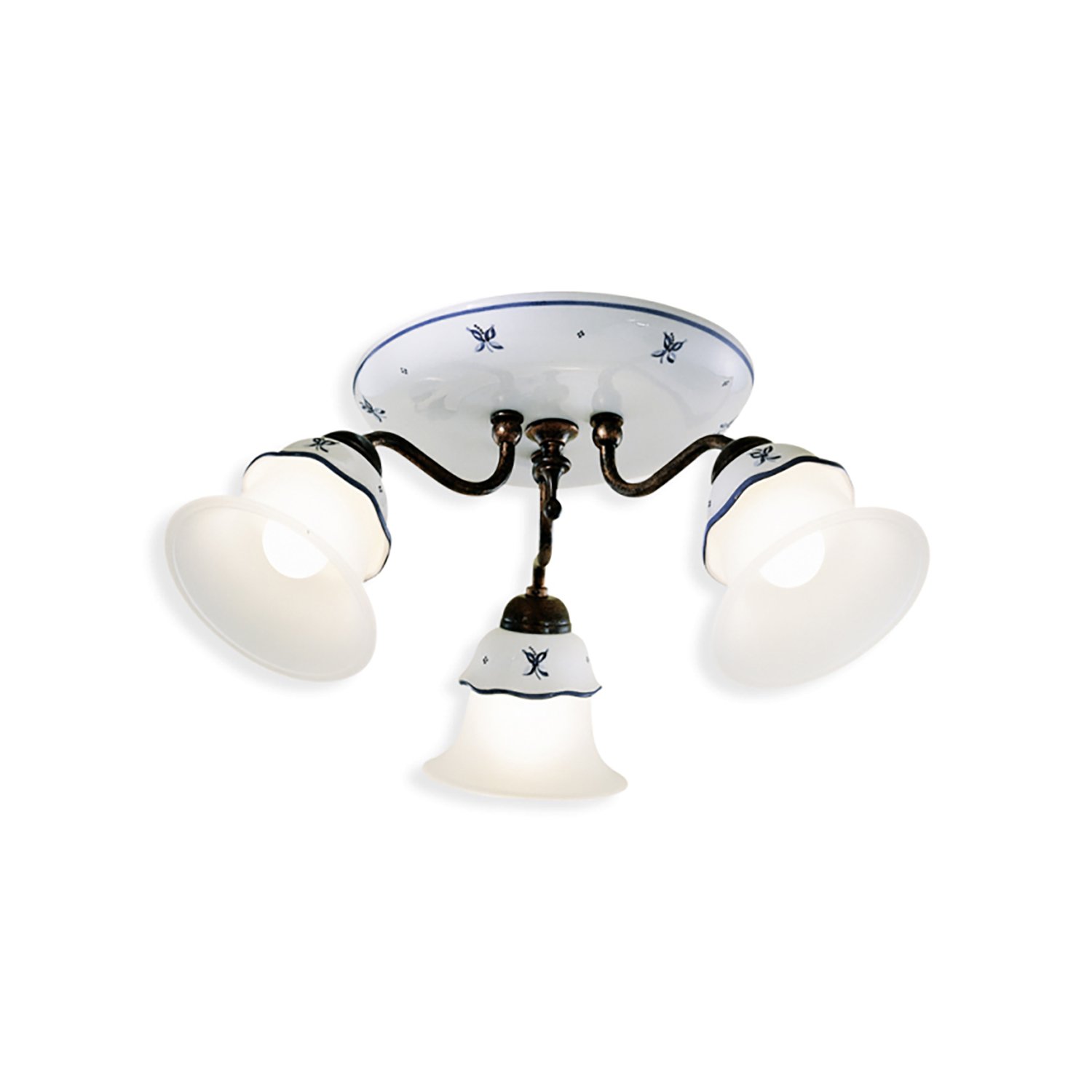 Plafoniera a bracci 3 Luci E14 diametro 50 cm in ceramica decoro Filo blu con montatura nero sfumato rame frutto di una lavorazione eseguita a mano.. L'equilibrio tra materiali di alta qualità e artigianato meticoloso rende questo prodotto un pezzo unico che aggiunge un tocco di raffinatezza e stile a qualsiasi spazio. Perfetto per illuminare con classe salotti, sale da pranzo o ambienti commerciali, questo prodotto diventa il punto focale dell'arredamento, creando un'atmosfera accogliente e sofisticata. Lasciati sedurre dalla sua bellezza senza tempo e regala al tuo ambiente un'illuminazione di classe. I decori si possono scegliere in base ai propri gusti e/o esigenze. E' disponibile anche nei colori Argento, Bianco, Bianco Sfumato Argento, Bianco Sfumato Oro, Nero, Nero Sfumato Argento, Nero Sfumato Oro, Nero Sfumato Rame, Ruggine, Verde Sfumato Oro, Ottone Brunito, Ottone Satinato, Nickel Satinato, Cromo.