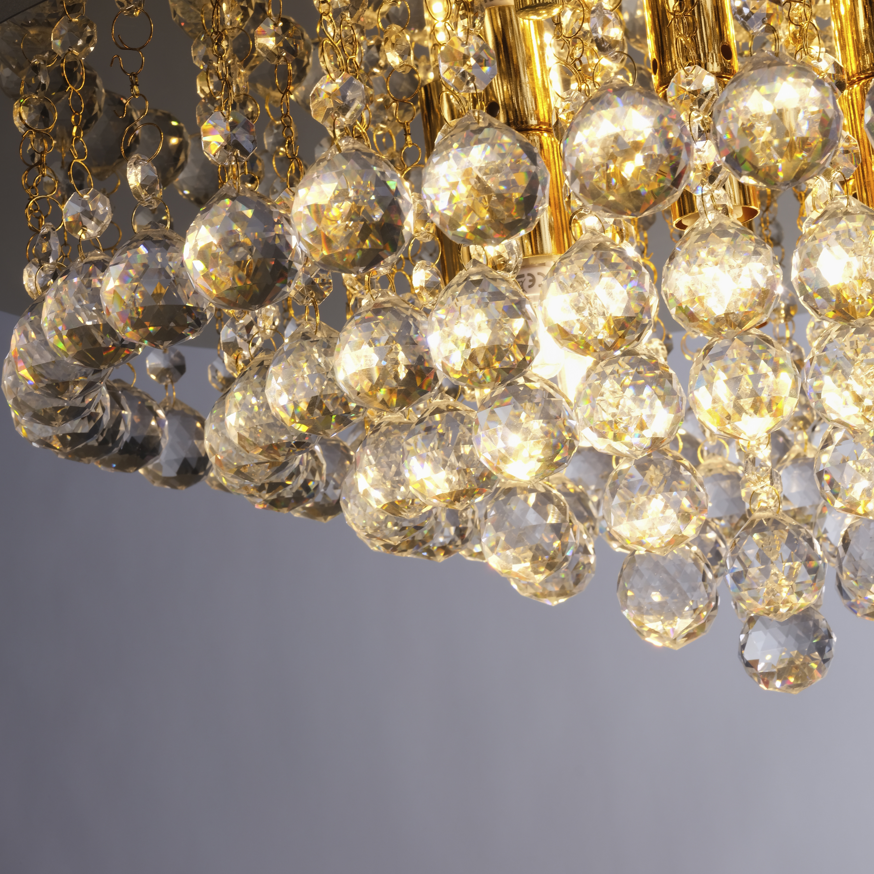 Collezione HannaLUCE LUSSUOSAQuesto lampadario da soffitto Hanna color oro a 4 luci con sfere di cristallo trasparente ha un aspetto spettacolare su qualsiasi soffit..
