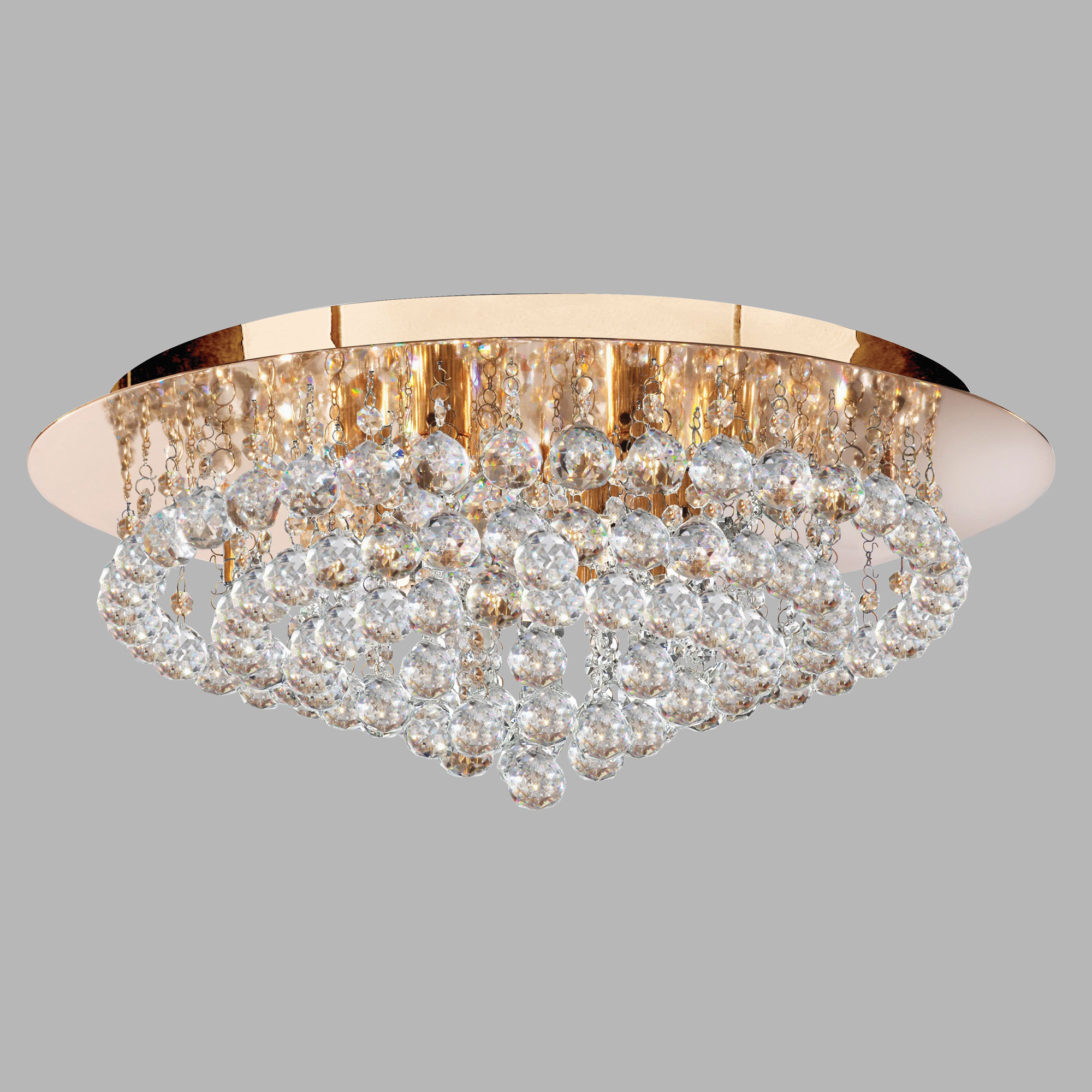 Collezione HannaLUCE LUSSUOSAQuesta plafoniera a filo Hanna dorata a 8 luci con sfere di cristallo trasparente sembra mozzafiato su qualsiasi soffitto. La lussuosa ..