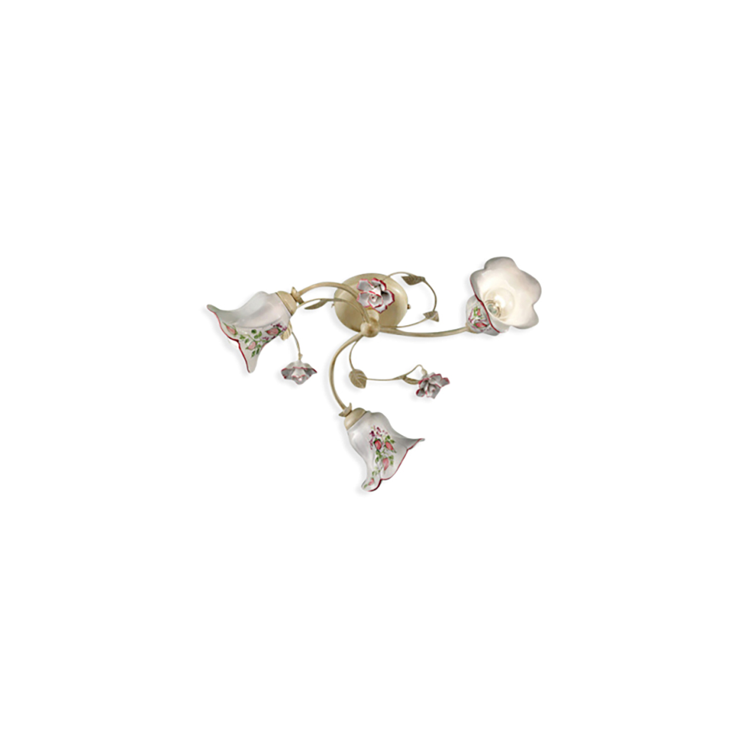 Plafoniera Classica Pisa Metallo E Ceramica Bianco Sfumato Oro 3 Luci E14