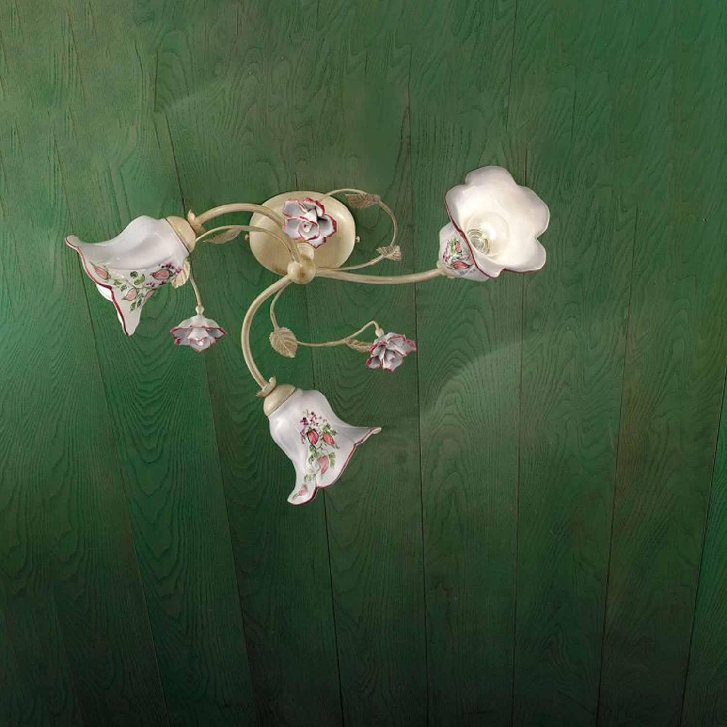 Collezione PISAELEGANZA ILLUMINATA CON STILE AUDACEPlafoniera 3 Luci E14 in ceramica decoro Filo verde con montatura ruggine frutto di una lavorazione eseguita rigor..