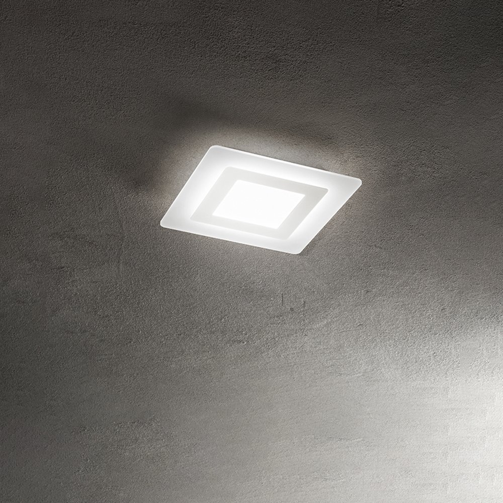 Plafoniera con telaio in metallo verniciato a polvere di colore bianco opaco e diffusore in plexiglass trasparente. È un'ottima soluzione di illuminazione per interni moderni. Il suo design semplice ed elegante garantisce una diffusione uniforme della luce. La sua forma snella permette di adattarsi a qualsiasi ambiente e stile di arredamento. Inoltre, grazie alla sua fonte luminosa a LED integrata, questa applique è anche molto efficiente dal punto di vista energetico.