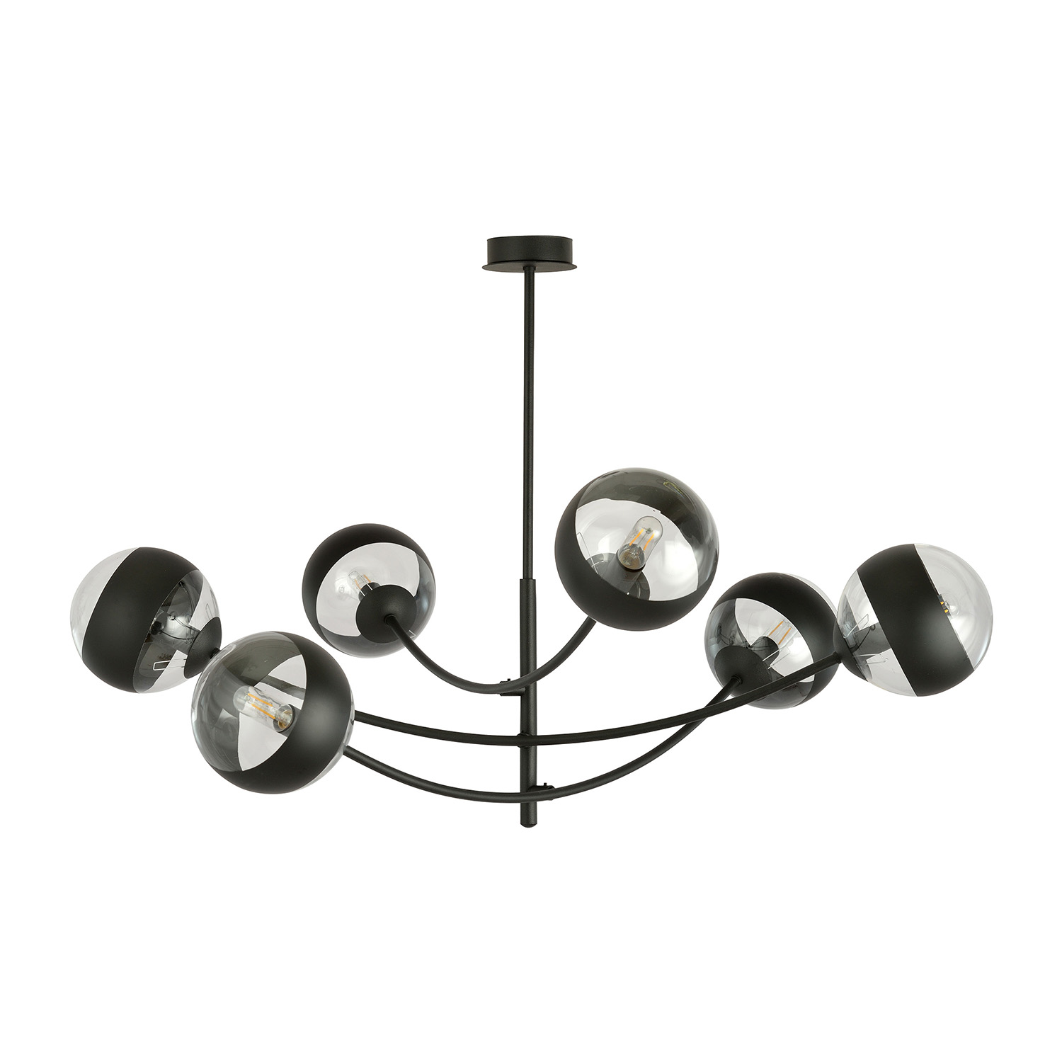 Collezione OceanoNATA DA UN’IDEA, CRESCIUTA DA UN GESTOSospensione contemporanea realizzata con base in metallo nero con bracci curvi regolabili e sei coppe sferiche..