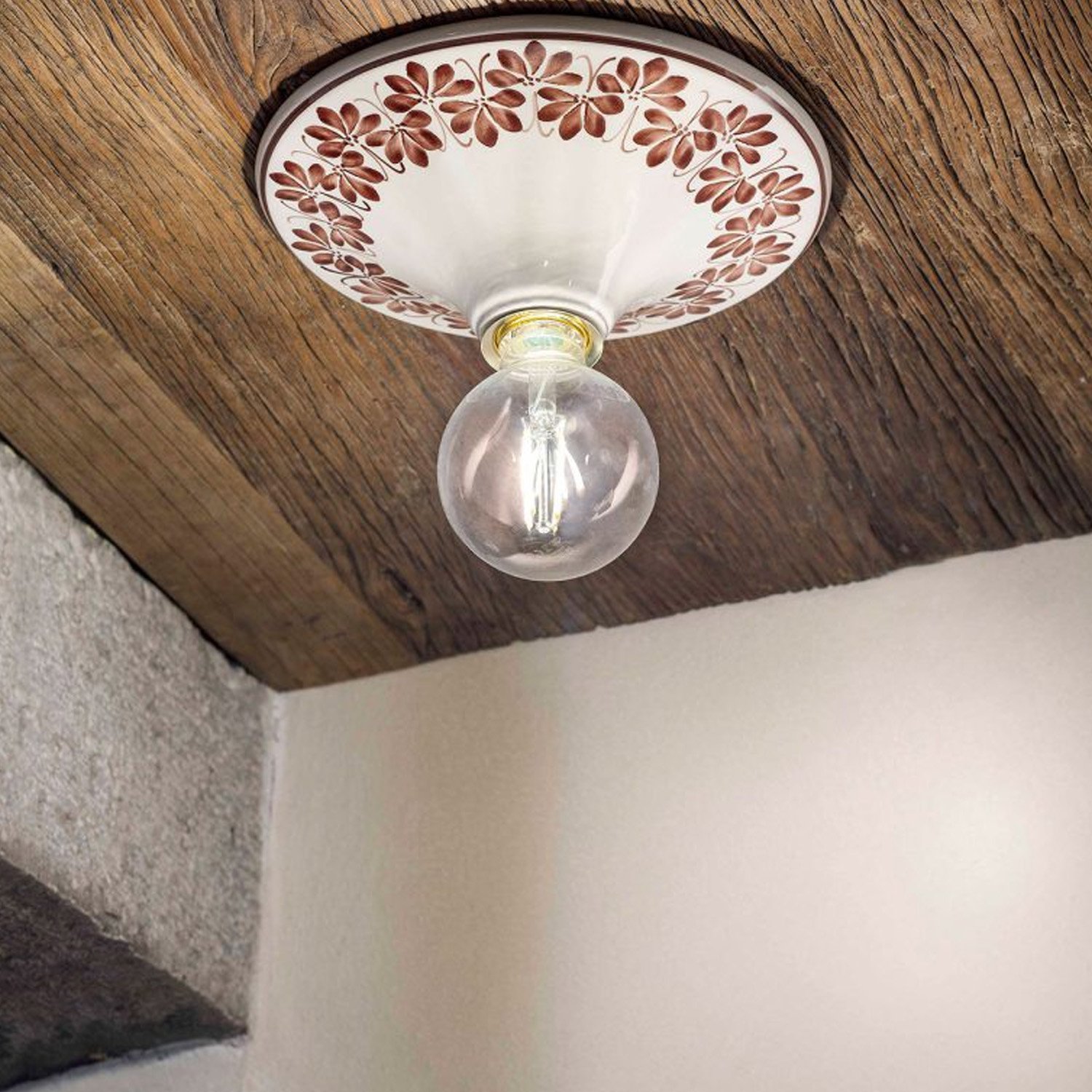 Plafoniera Classica Trieste Bianco Decorato Filo Marrone 1 Luce E27