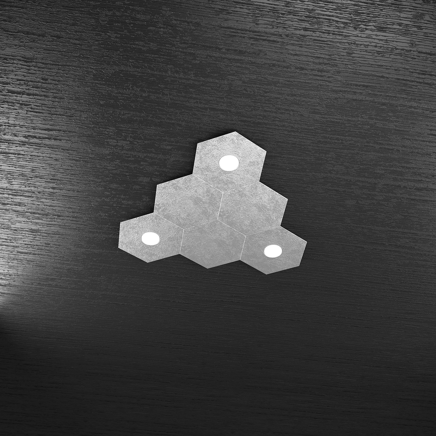 Plafoniera Industrial-Minimal 2 Moduli Hexagon Metallo Foglia Argento Led 12W