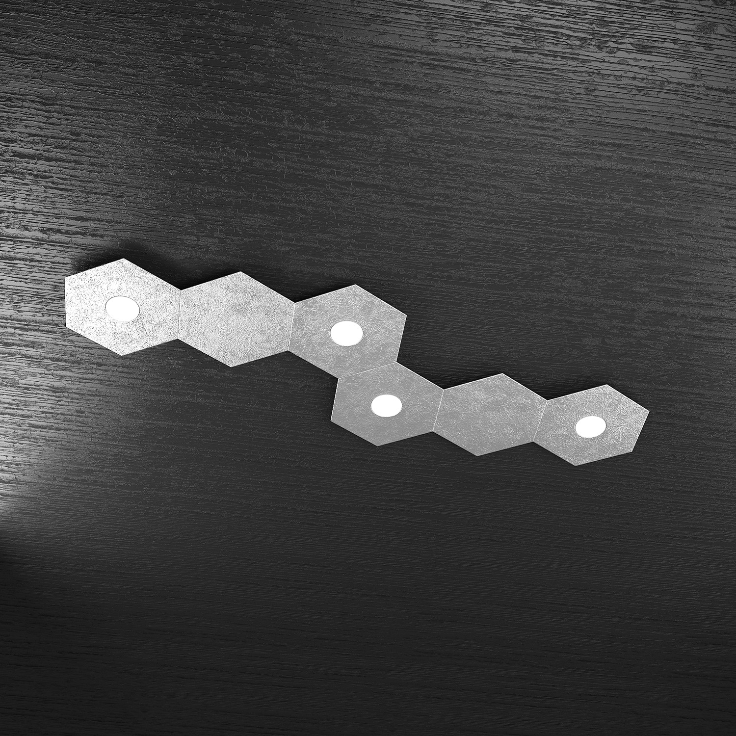 Plafoniera Industrial-Minimal 2 Moduli Hexagon Metallo Foglia Argento Led 12W