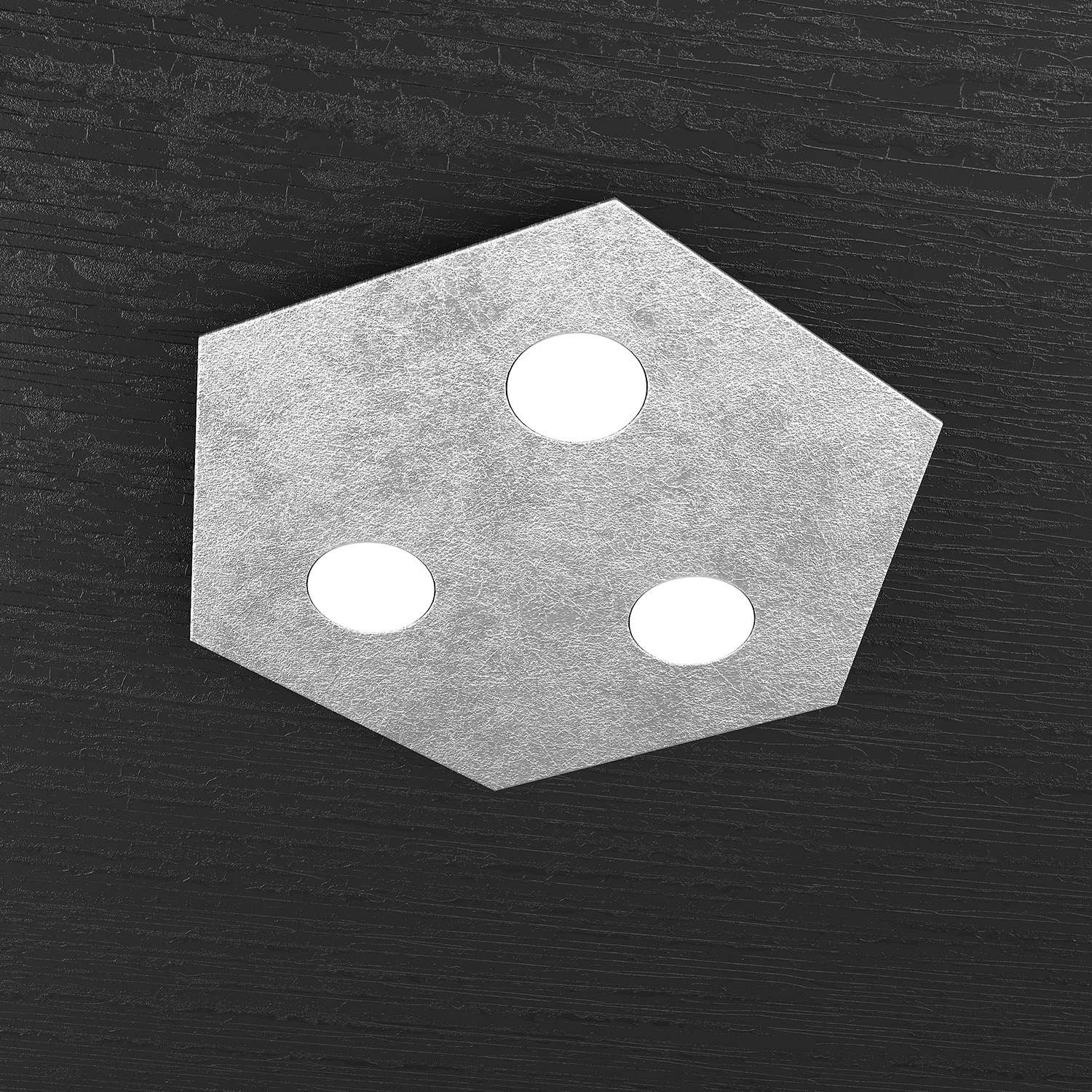 Plafoniera Industrial-Minimal Hexagon Metallo Foglia Argento 3 Luci Led 12X3W