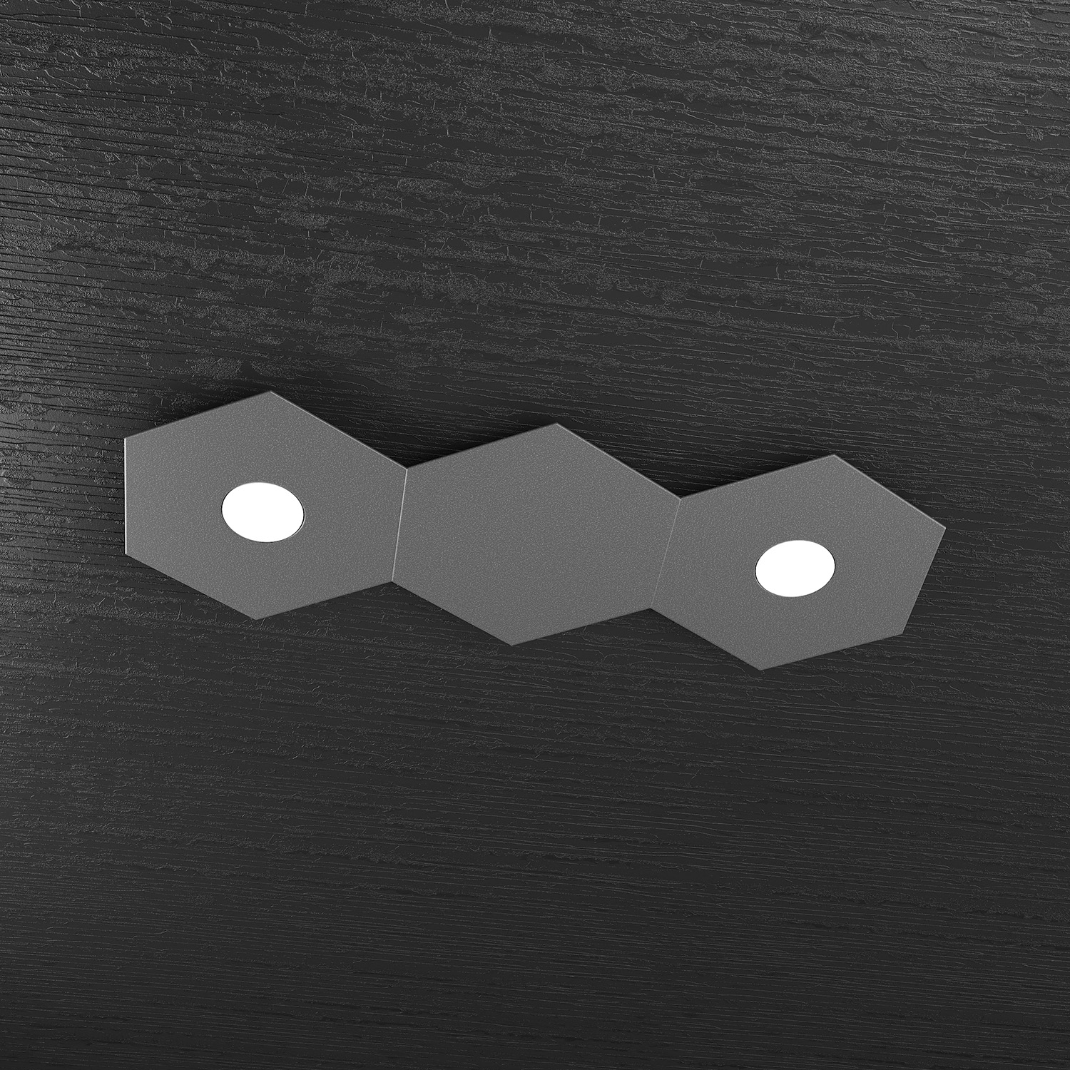 Plafoniera Industrial-Minimal 3 Moduli Hexagon Metallo Grigio 2 Luci Led 12X2W