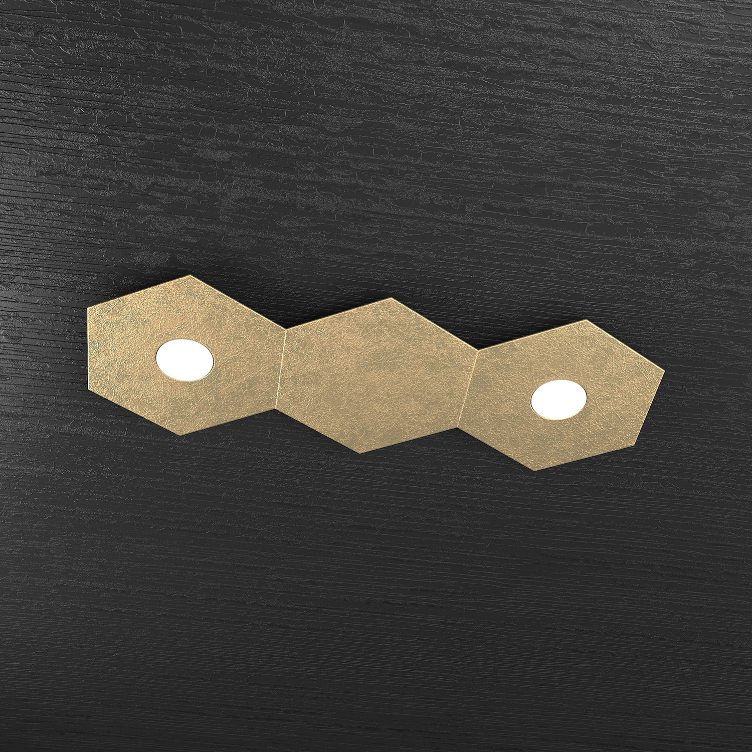 Plafoniera Industrial-Minimal 3 Moduli Hexagon Metallo Foglia Oro 2 Led 12X2W