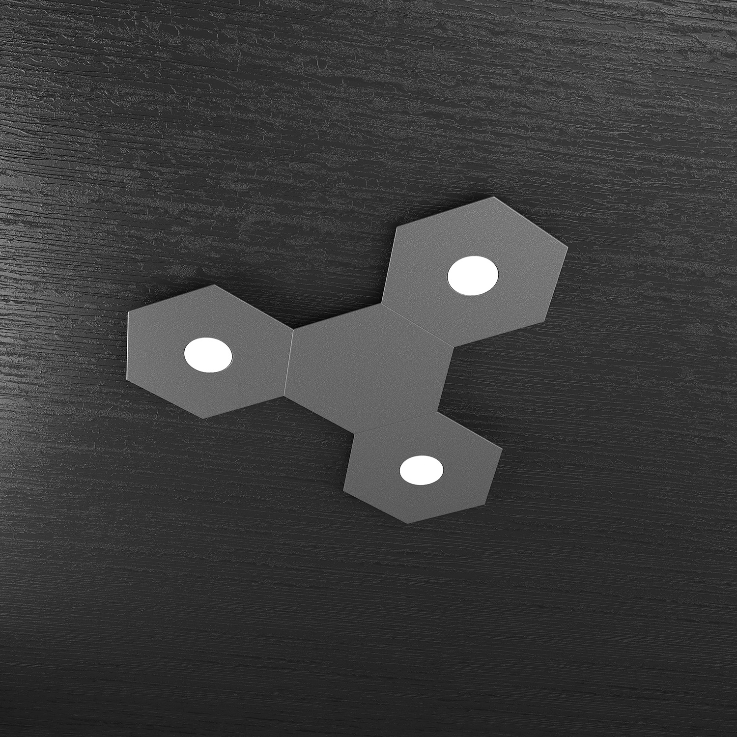Collezione HEXAGONIL FASCINO GEOMETRICO DELL'ILLUMINAZIONE LEDPlafoniera 3 luci esagonale formata da lastre quadrate di metallo verniciato in finitura grigio antraci..