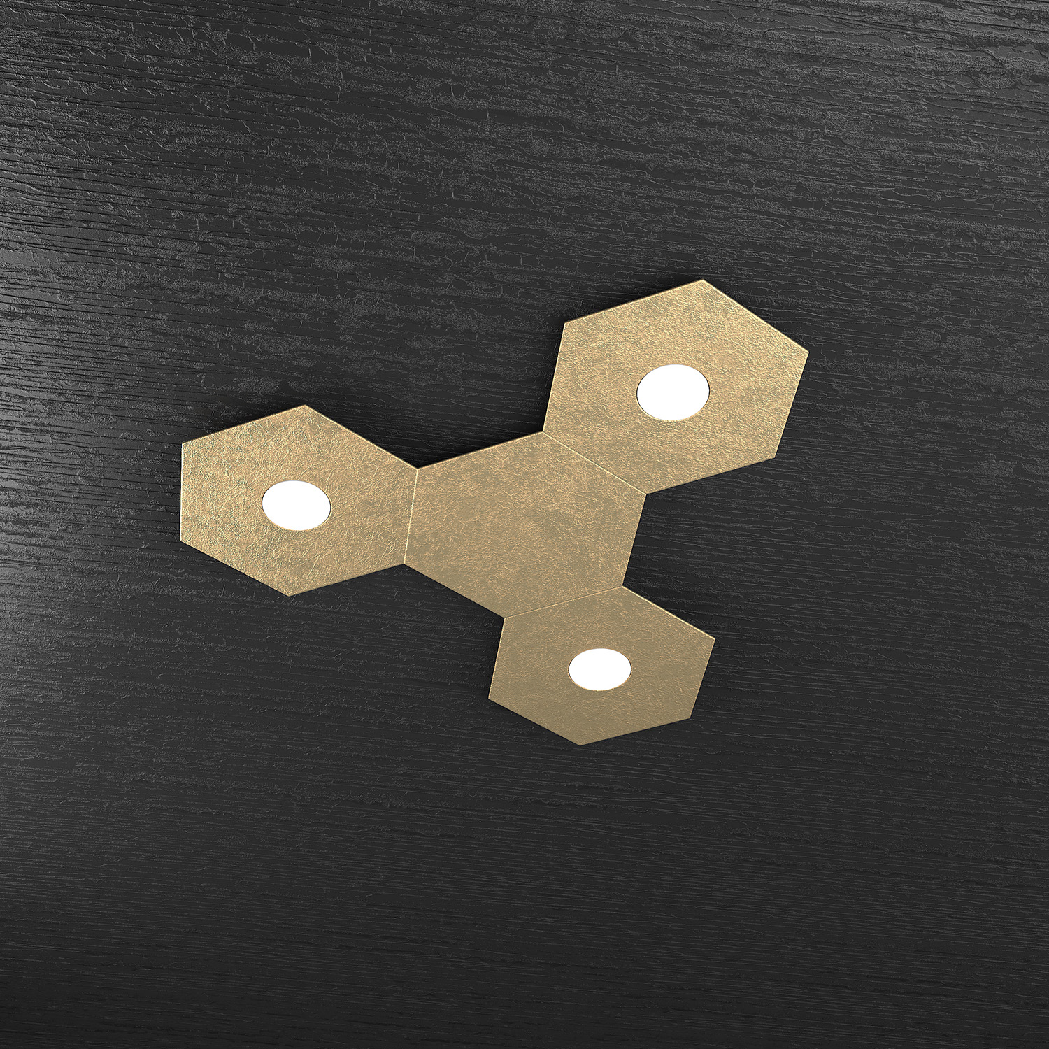 Plafoniera Industrial-Minimal 4 Moduli Hexagon Metallo Foglia Oro 3 Led 12X3W