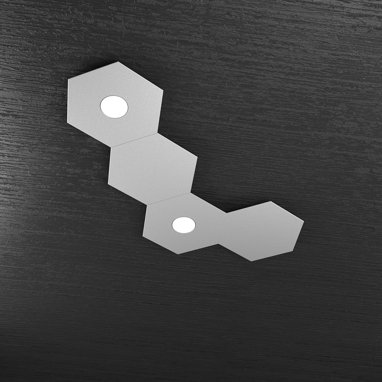 Plafoniera Industrial-Minimal 2 Moduli Hexagon Metallo Foglia Argento Led 12W