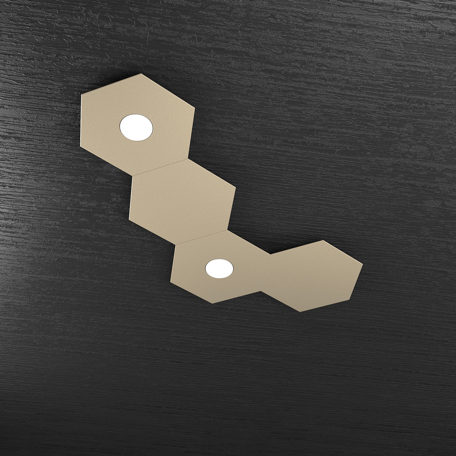 Plafoniera Industrial-Minimal 4 Moduli Hexagon Metallo Sabbia 2 Luci Led 12X2W