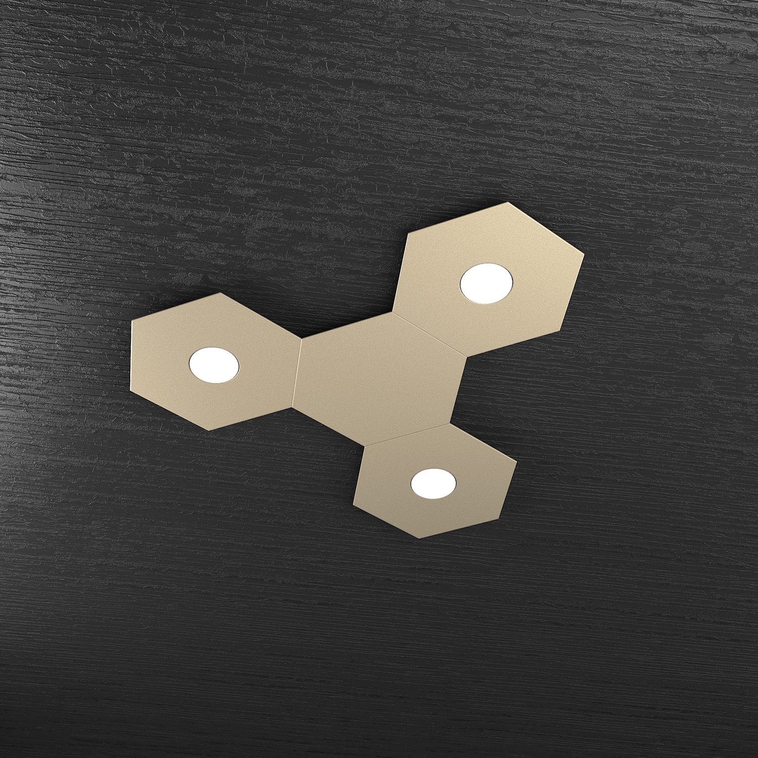 Plafoniera Industrial-Minimal 4 Moduli Hexagon Metallo Sabbia 3 Luci Led 12X3W