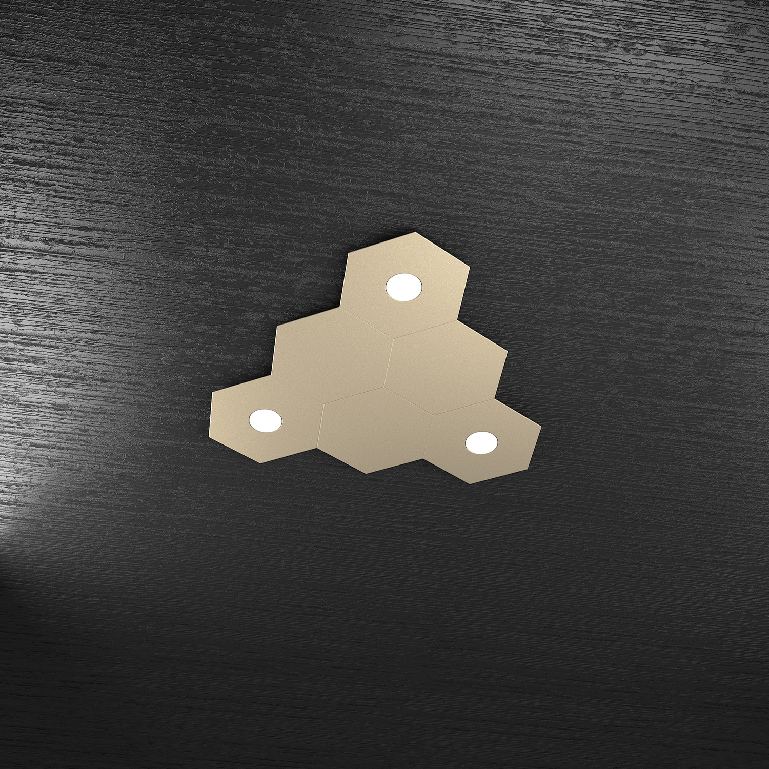 Plafoniera Industrial-Minimal 2 Moduli Hexagon Metallo Foglia Oro 1 Luce Led 12W