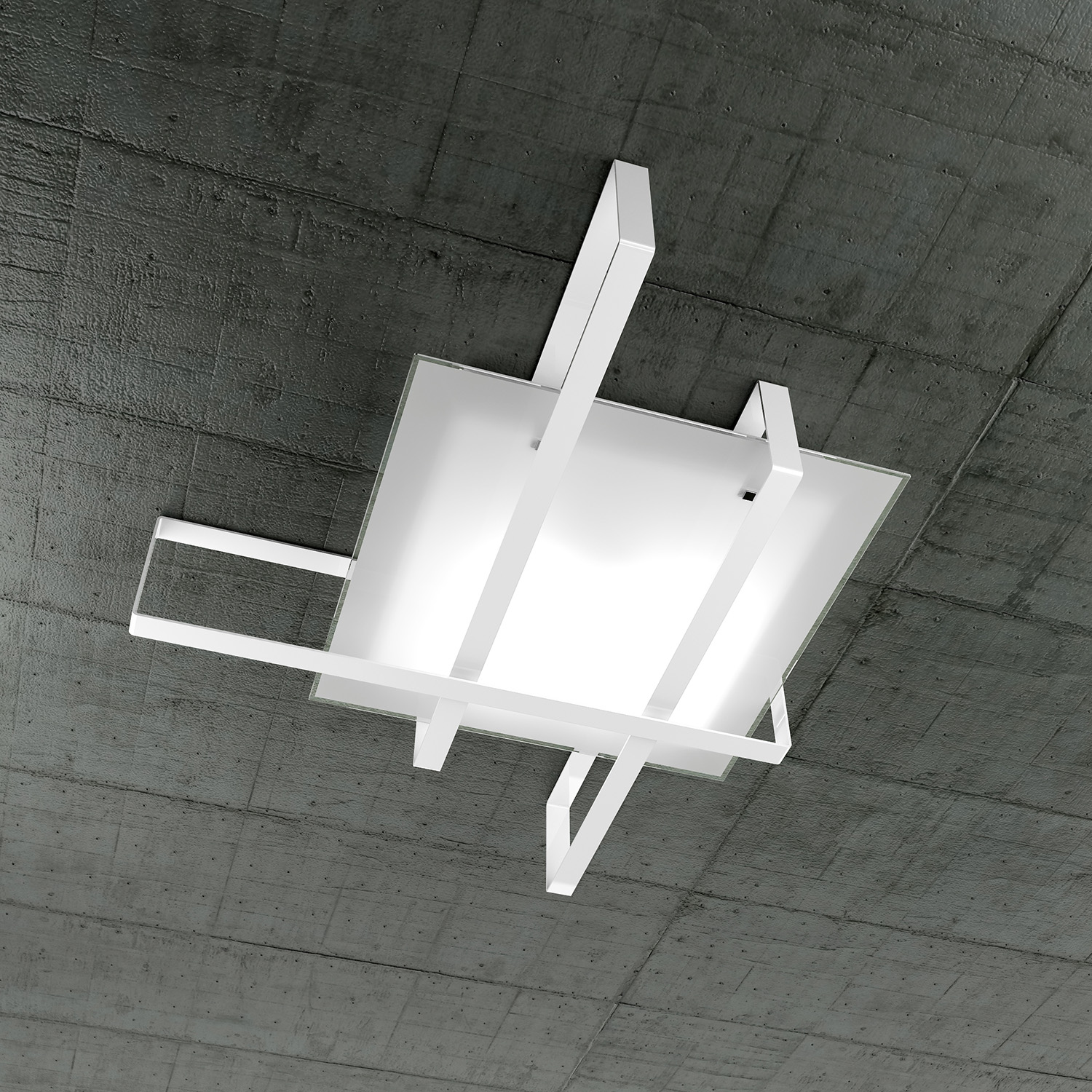 Collezione CROSSDECORAZIONE A FASCECollezione di lampade composte da una struttura in metallo verniciato bianco e diffusore di vetro in lastra extrachiaro satinato c..