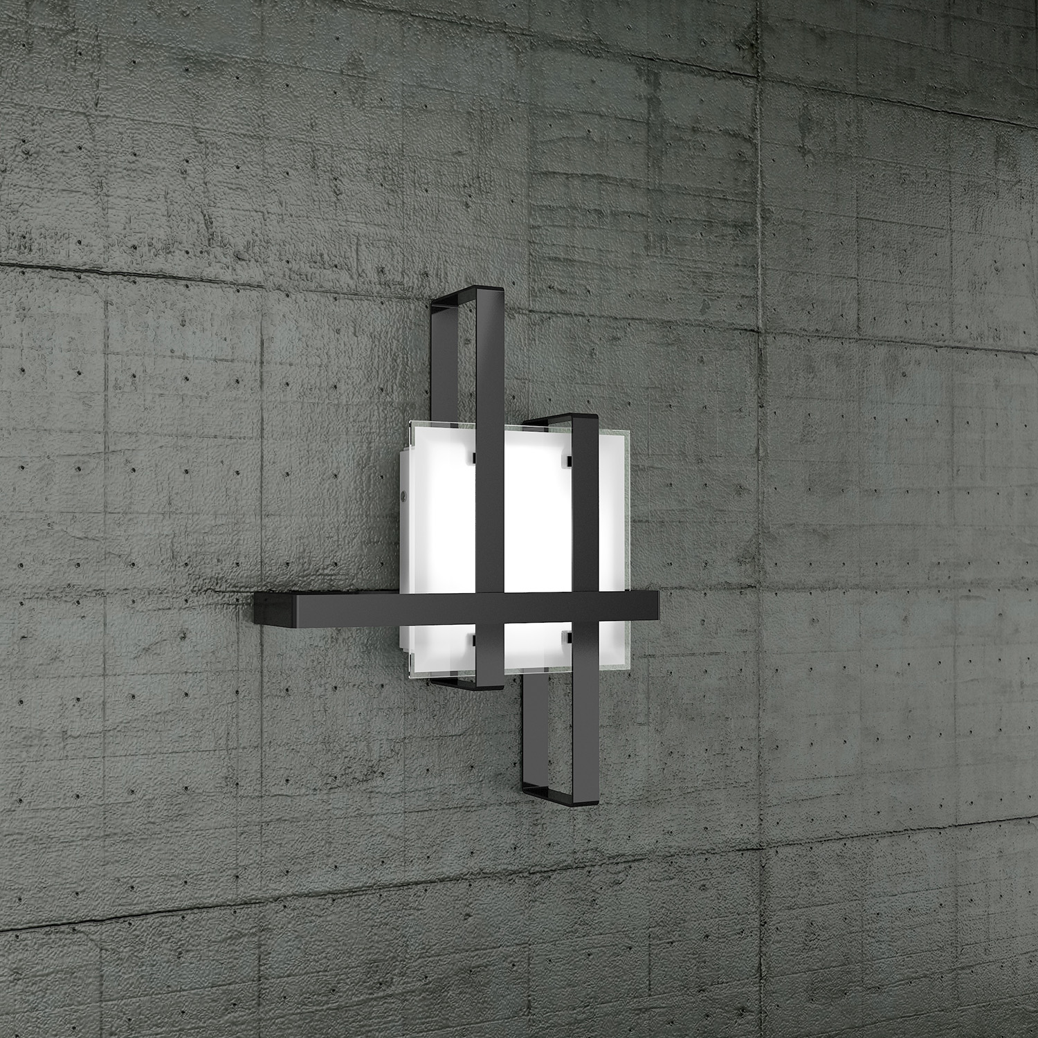 Applique Industrial-Minimal Cross Metallo Nero Vetro Bianco 2 Luci E27 29Cm