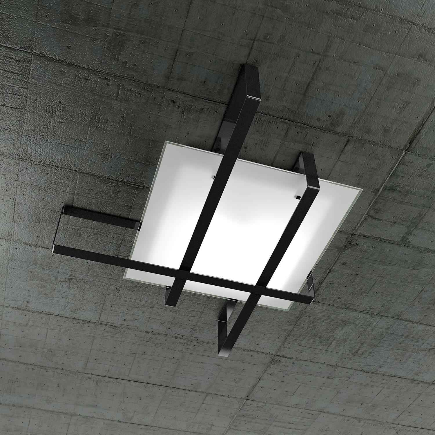 Plafoniera Industrial-Minimal Cross Metallo Nero Vetro Bianco 2 Luci E27 50Cm