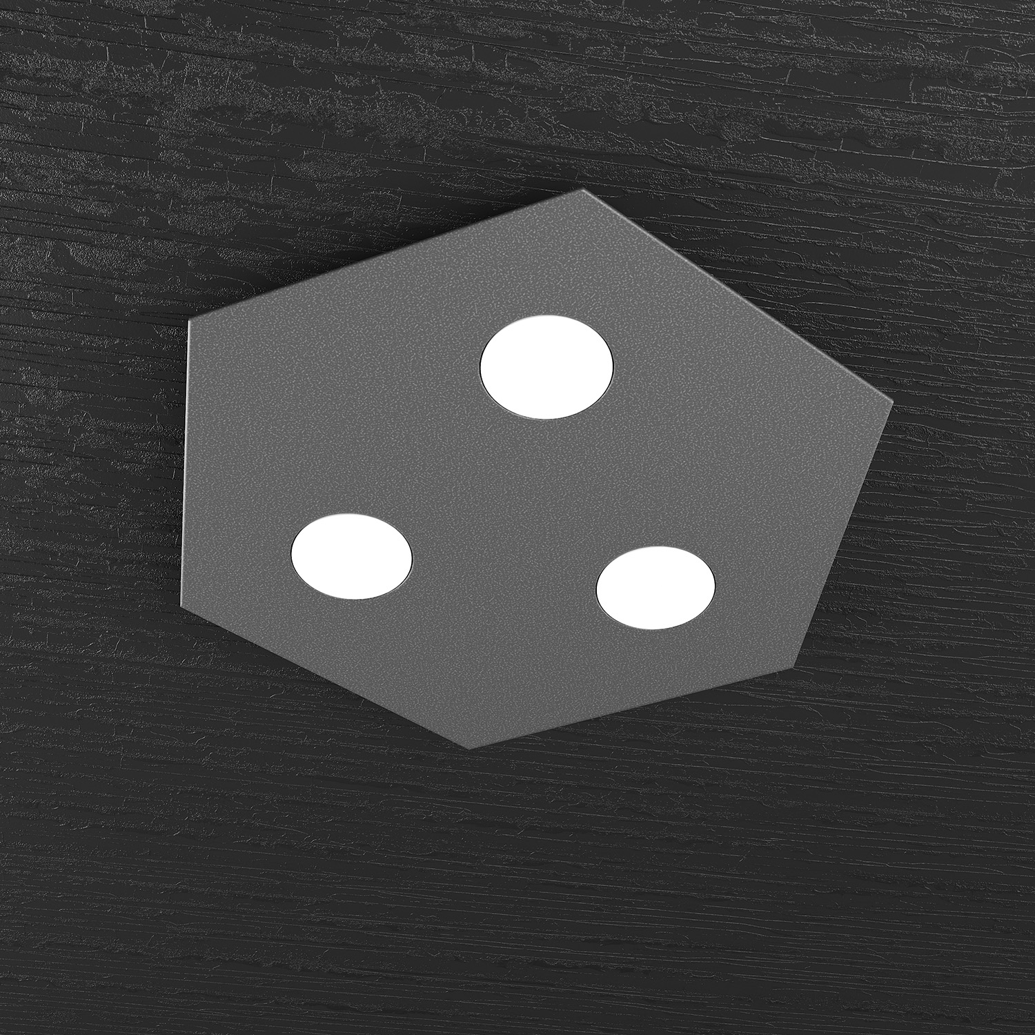 Collezione HEXAGONIL FASCINO GEOMETRICO DELL'ILLUMINAZIONE LEDPlafoniera 3 luci esagonale formata da lastre quadrate di metallo verniciato in finitura grigio antraci..