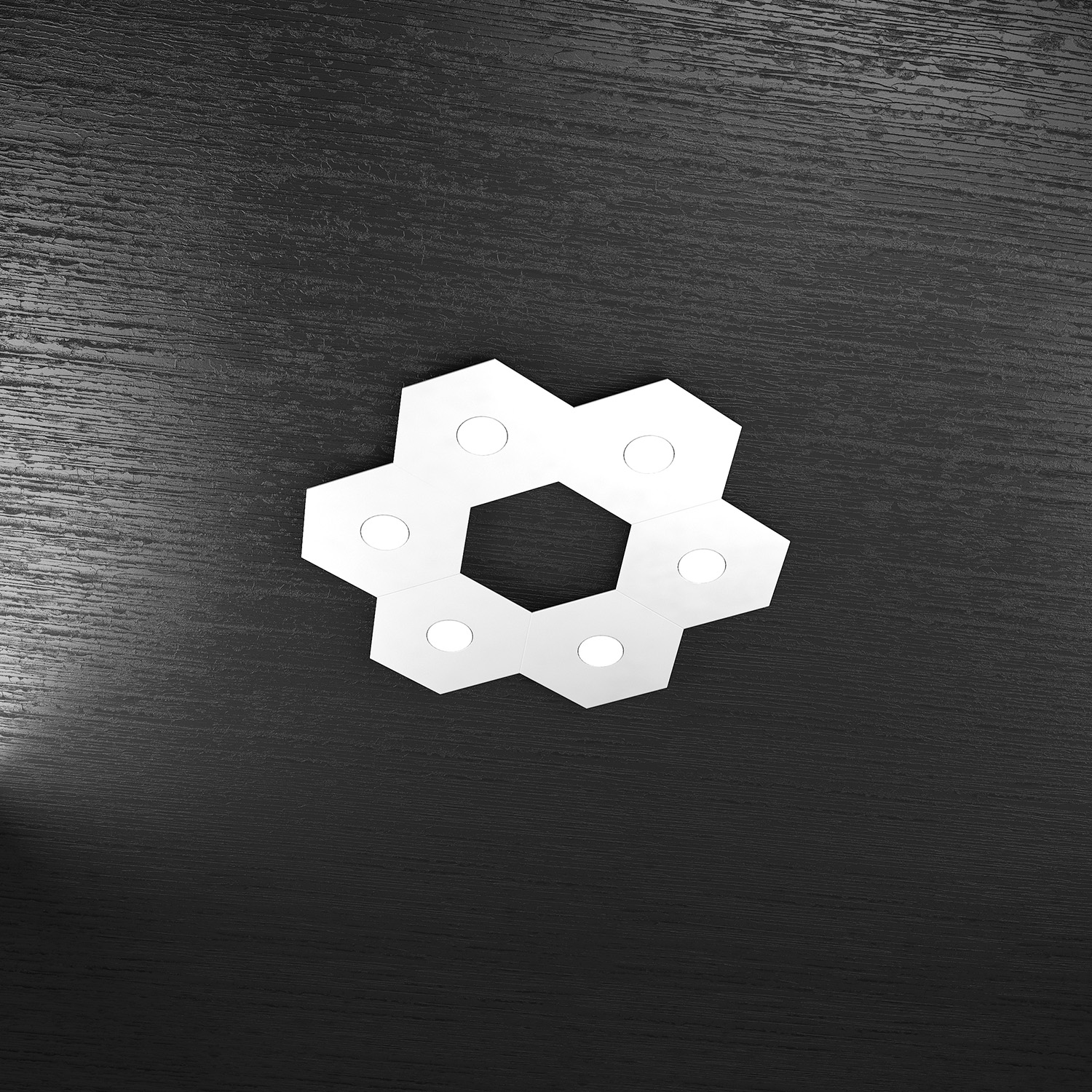 Plafoniera Industrial-Minimal Hexagon Metallo Bianco 6 Luci Led 12X6W