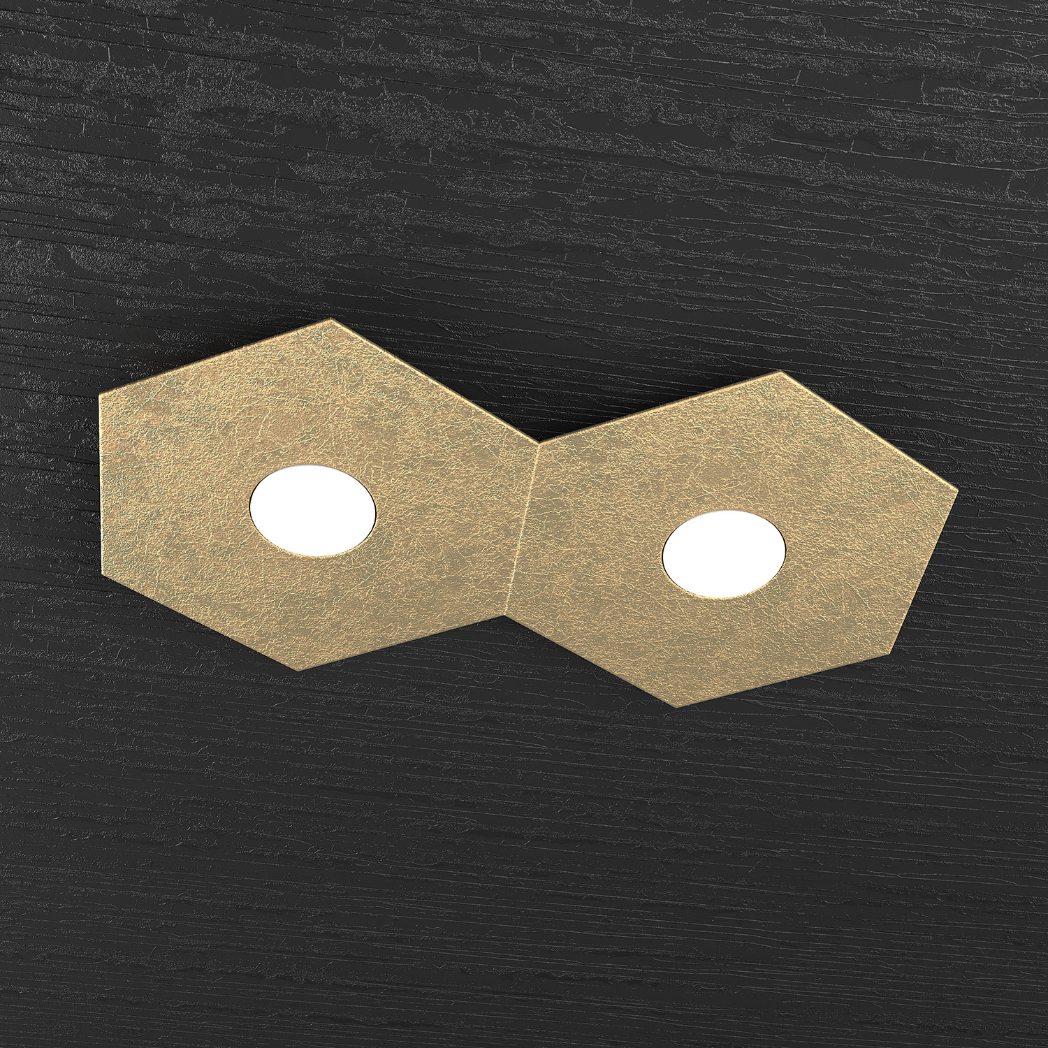 Plafoniera Industrial-Minimal 2 Moduli Hexagon Metallo Foglia Oro 1 Luce Led 12W