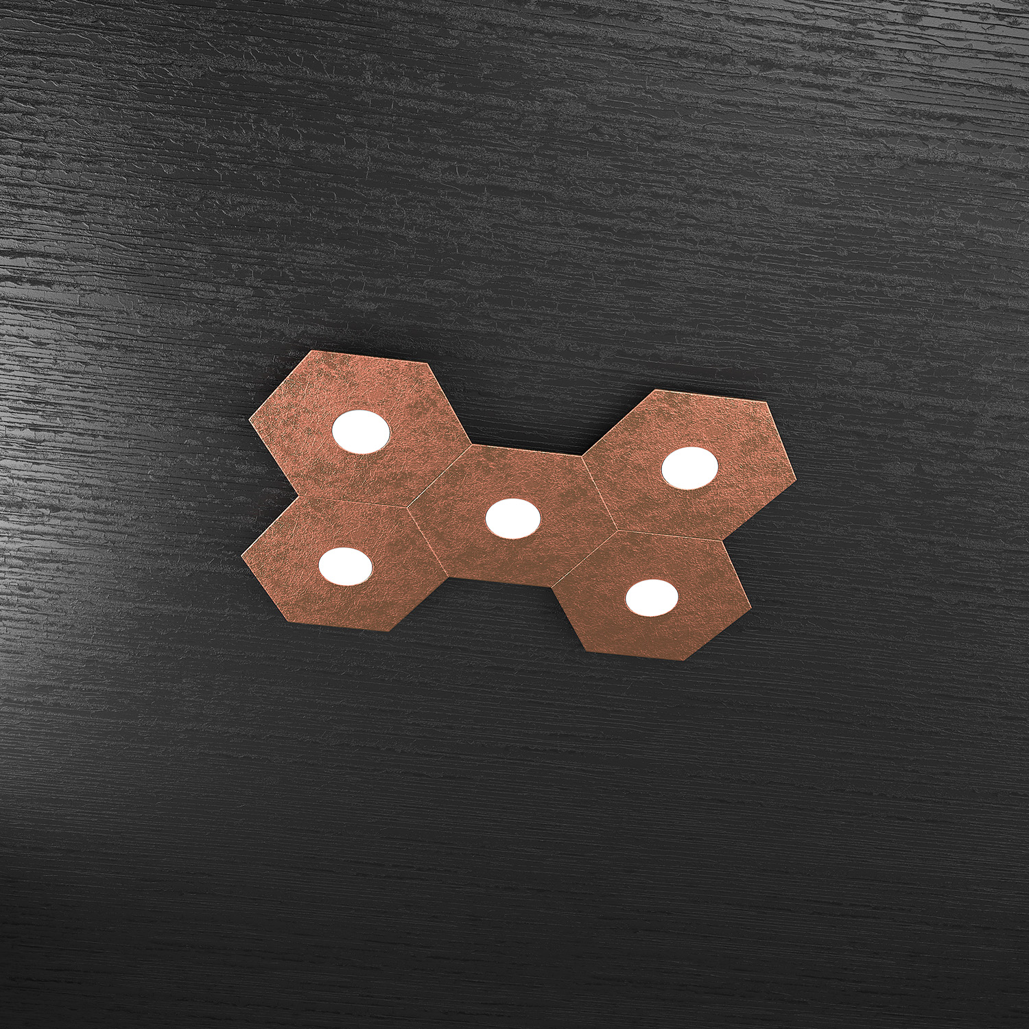 Plafoniera Industrial-Minimal Hexagon Metallo Foglia Rame 5 Luci Led 12X5W