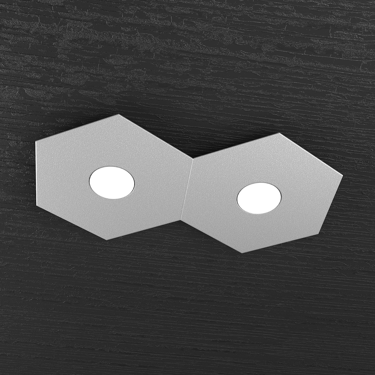 Plafoniera Industrial-Minimal 2 Moduli Hexagon Metallo Foglia Argento Led 12W
