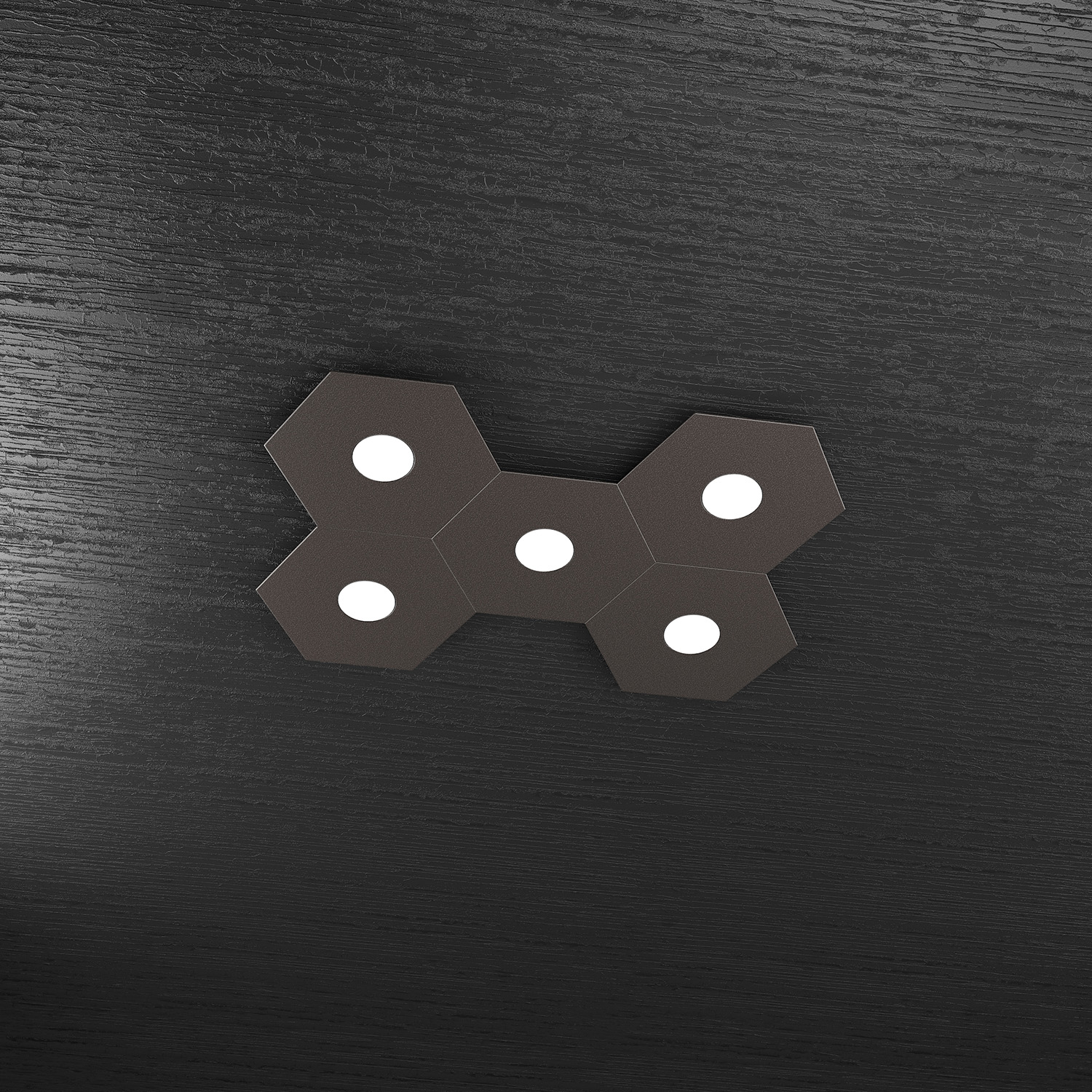 Plafoniera Industrial-Minimal Hexagon Metallo Marrone 5 Luci Led 12X5W