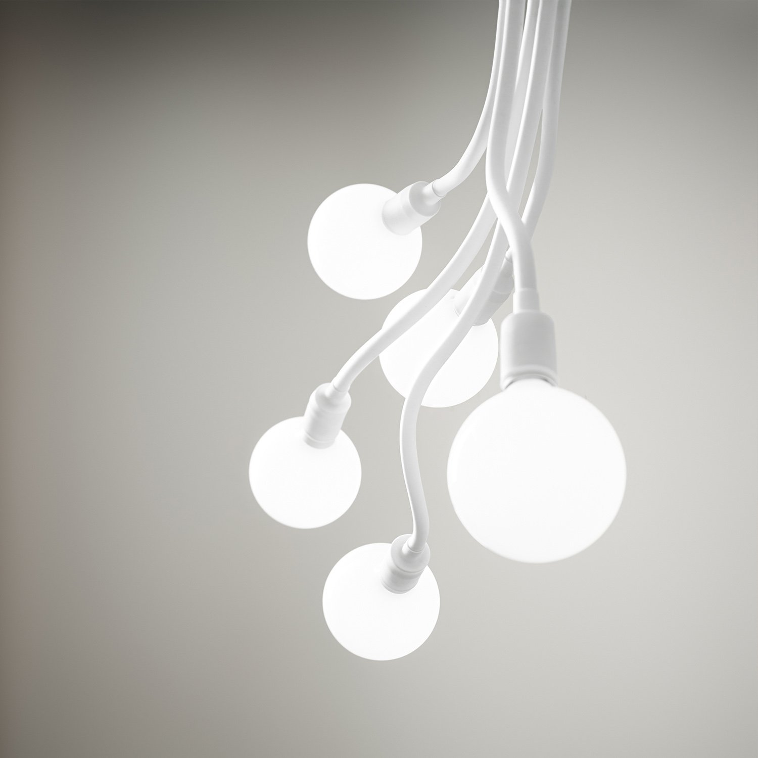 Collezione BulboLA LUCE FLESSIBILELa plafoniera orientabile in metallo e gomma bianco opaco, è caratterizzata da una forma a bulbo allungata. Crea un contrasto di t..