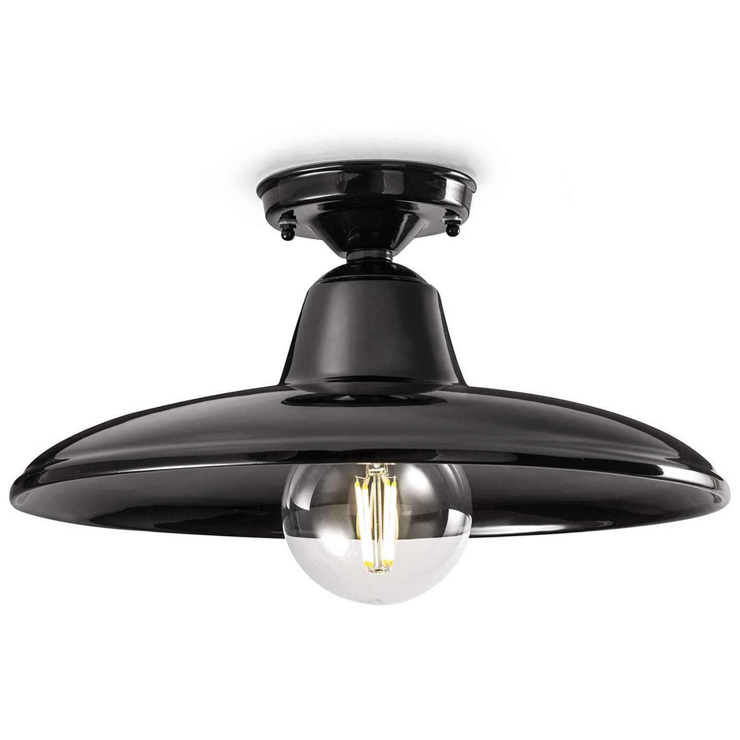 Plafoniera Vintage B&W Metallo Smaltato Nero E Bianco 1 Luce E27 30Cm