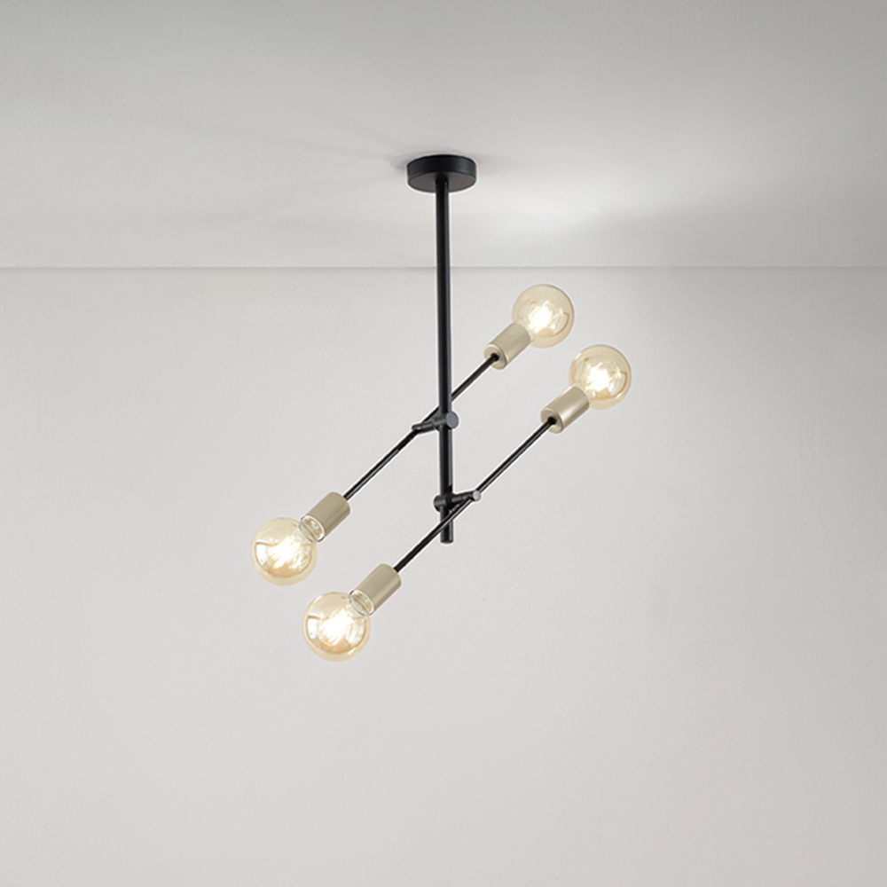 Plafoniera Industrial-Minimal-Nordico Vector Metallo Nero 4 Luci E27